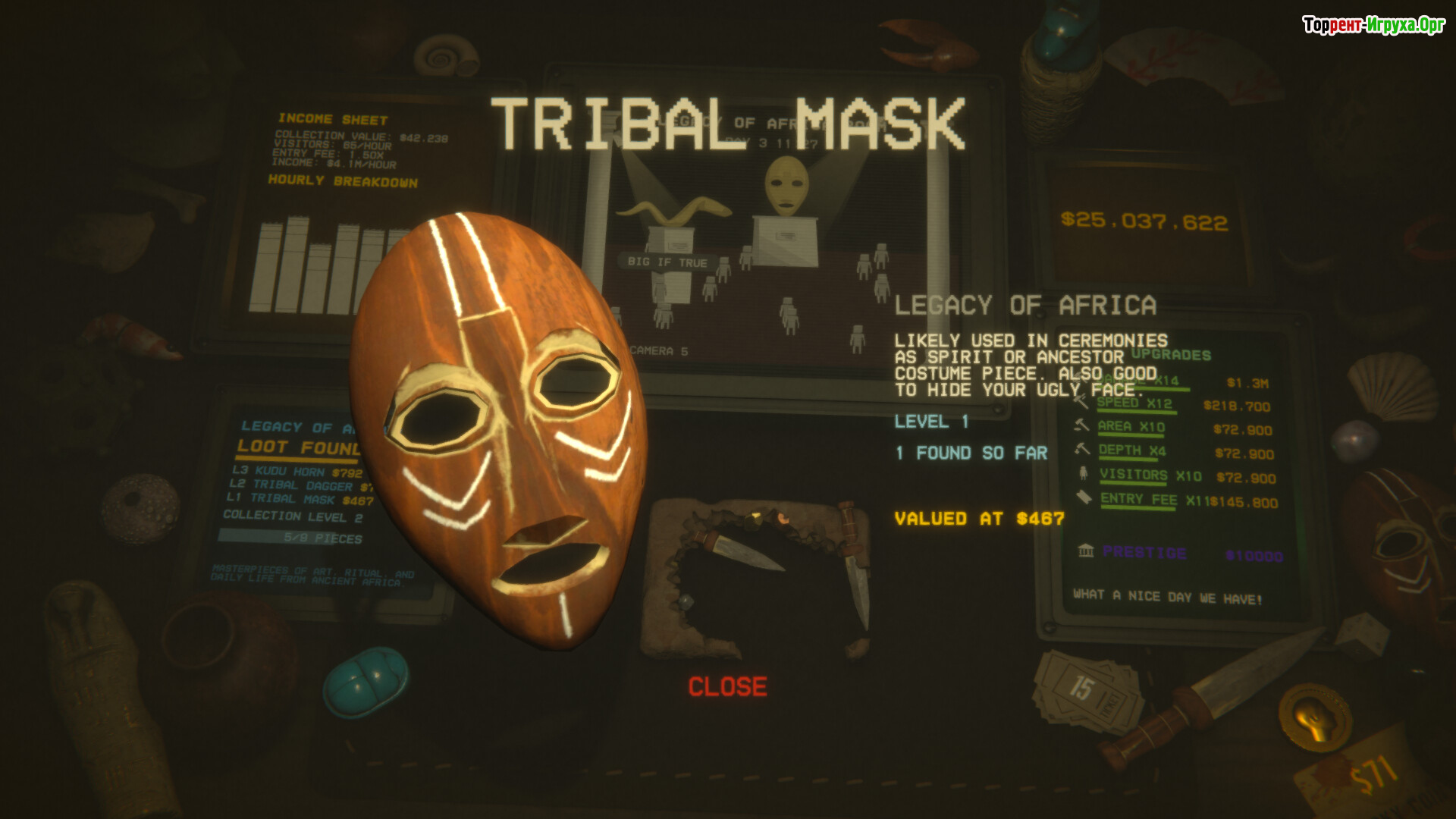 Прогресс игрока усиливается через систему престижа, основанную на музейных билетах, спрятанных в камнях. Более пятидесяти навыков модифицируют стиль игры и ускоряют развитие. По мере расширения коллекции музей привлекает посетителей, которые приносят стабильный доход, превращая экспозицию в источник непрерывного заработка и позволяя наслаждаться продуманным симбиозом кликер- и idle-механик.