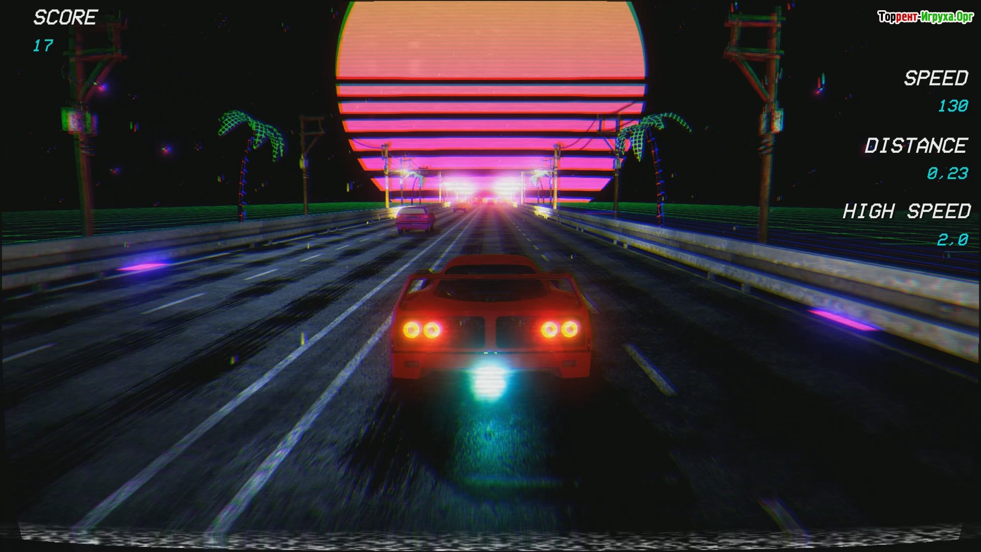 Retrowave — это уникальная гоночная игра от разработчика RewindApp, выпущенная в 2022 году, которая погружает игроков в атмосферу 80-х благодаря яркой ретро-графике. В игре вы окунётесь в неоновое сияние ночного города, мчась по бескрайнему шоссе, окружённому фантастическими пальмами и эффектными огнями.