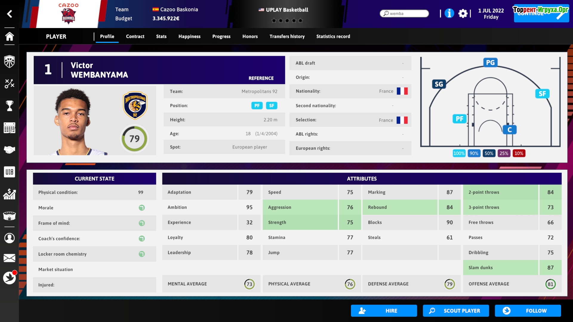 International Basketball Manager 23 от UPLAY Basketball позволяет вам стать легендой в мире баскетбольного менеджмента. Возглавьте собственную команду и создайте баскетбольную династию, используя широкий набор инструментов для управления и развития клуба. Покажите свои лидерские качества и поднимитесь на вершину чемпионатов.