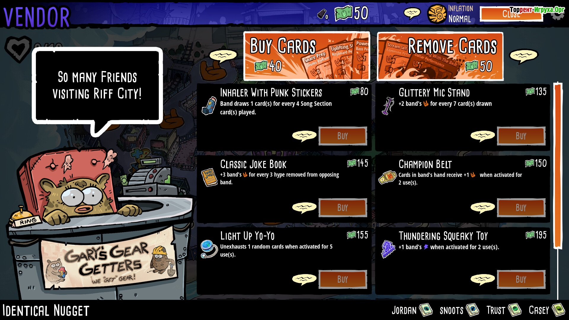 Не забудьте настроить звучание инструментов, подобрать индивидуальный образ для вашей группы и придумать оригинальное название. Battle Bands: Rock & Roll Deckbuilder сочетает увлекательные музыкальные соревнования с глубоким геймплеем, позволяя сражаться в уникальном 4х4 режиме. Погрузитесь в мир рока и стройте свою дорогу к славе!