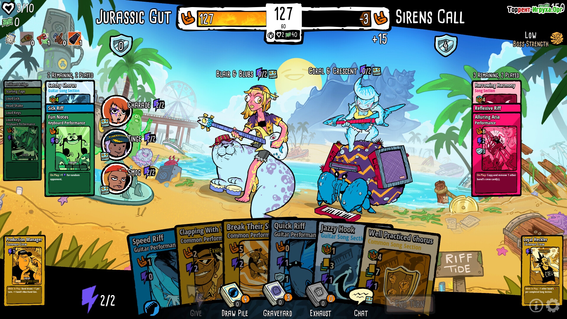 Battle Bands: Rock & Roll Deckbuilder от Aerie Digital, выпущенная в 2023 году, предлагает захватывающий рогалайт сражений между музыкальными группами, где главная цель — стать настоящей легендой рок-н-ролла. В процессе игры вам предстоит постоянно совершенствовать навыки создания колод, чтобы одержать верх над противниками и завоевать звание лучшего в музыкальной битве.