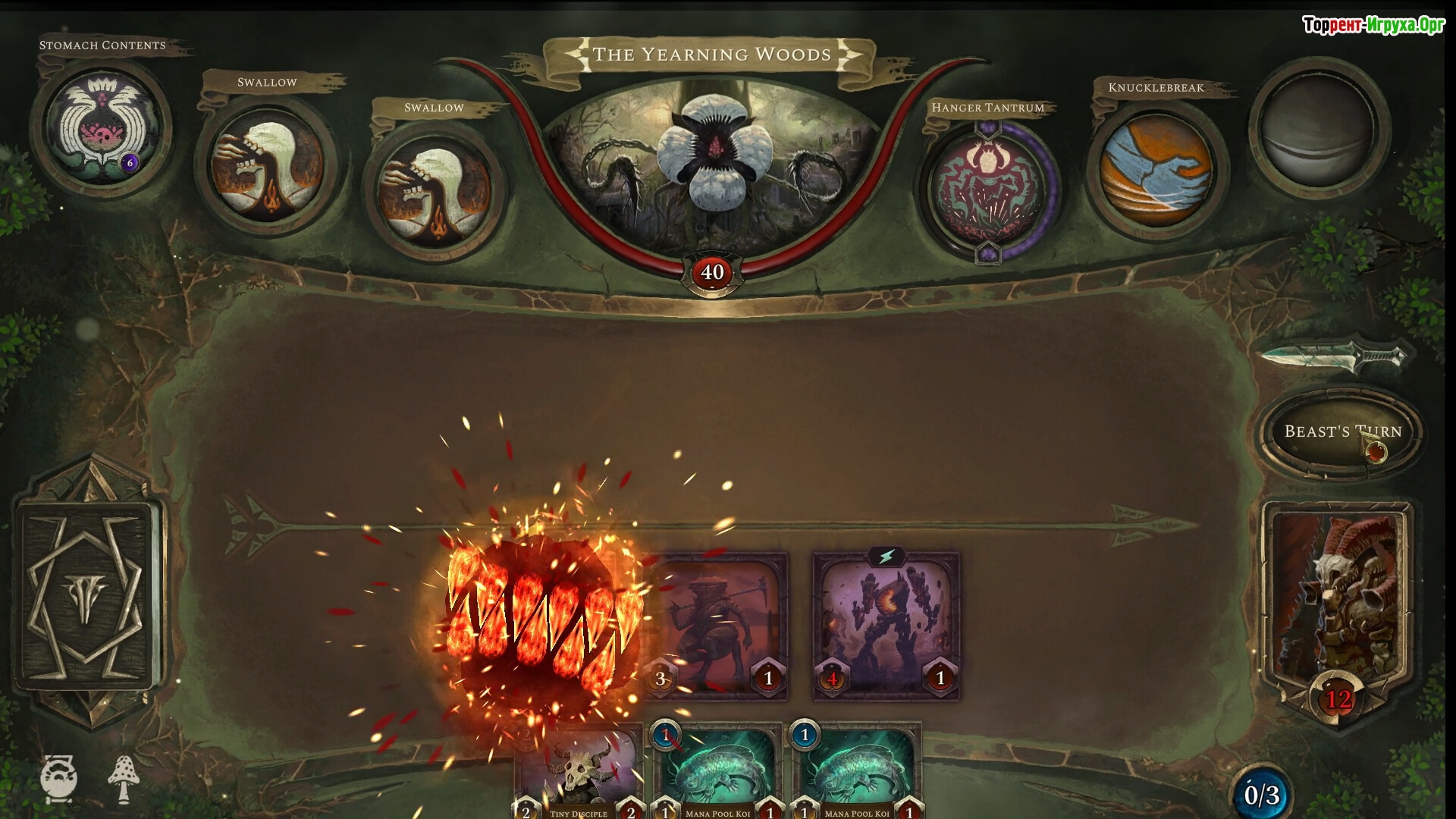 Acolyte of the Altar от Black Kite Games – это захватывающий рогалайт-симулятор колод, вышедший в 2024 году. Игра предлагает отправиться на охоту в пустоши, чтобы сразиться с гигантскими зверями, которые постоянно развиваются и становятся сильнее в процессе боя. В этом уникальном проекте стратегия и тактика играют ключевую роль, ведь враги могут поглощать ваших существ и активно противостоять вашим заклинаниям.
