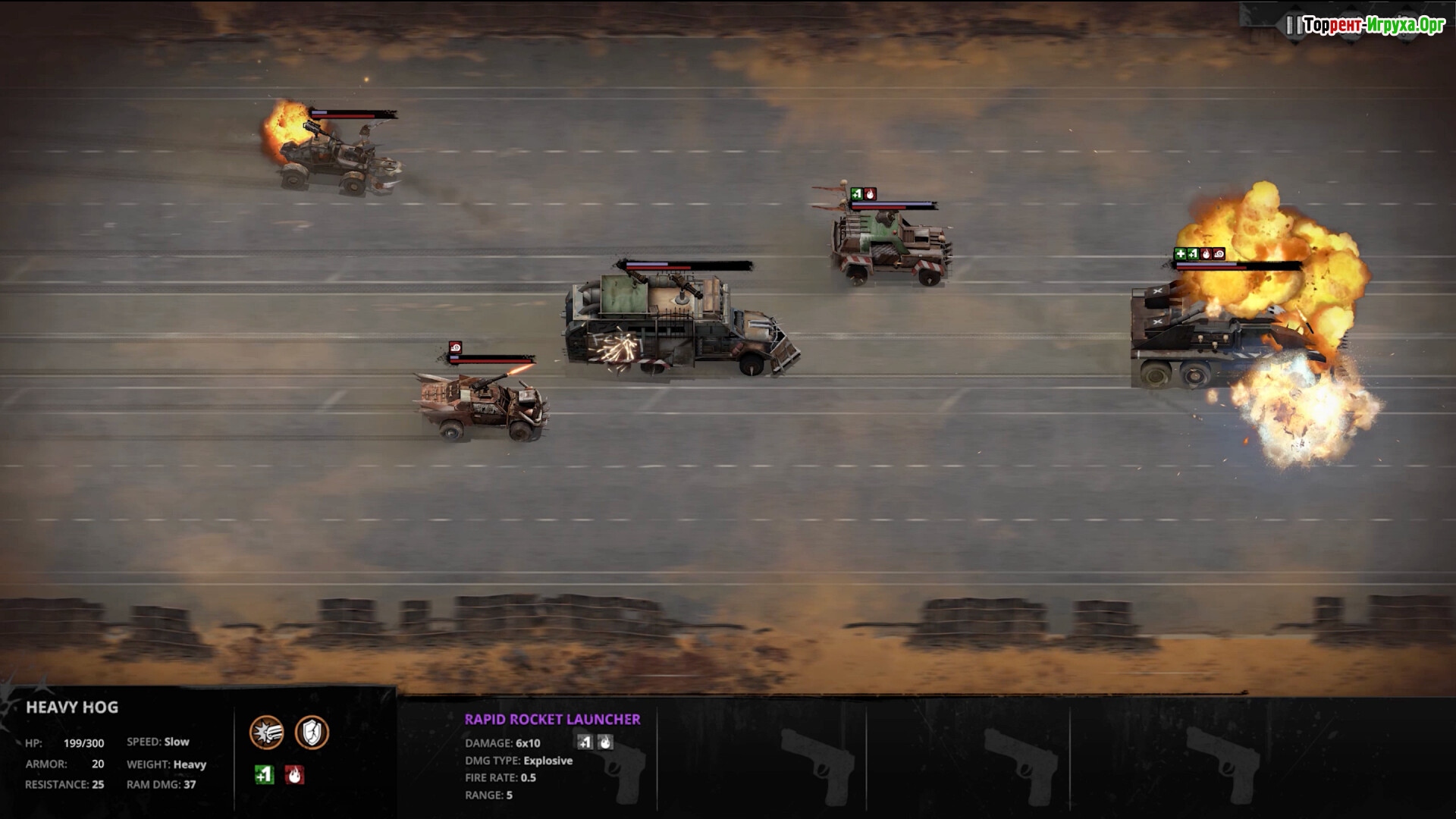 Основная геймплей механика это уворачиваться от препятствий и прожимать по КД скилы, если у вас караван из 3 машин это превращается в геморрой и неимоверную однообразную духатуру помноженную на 3.