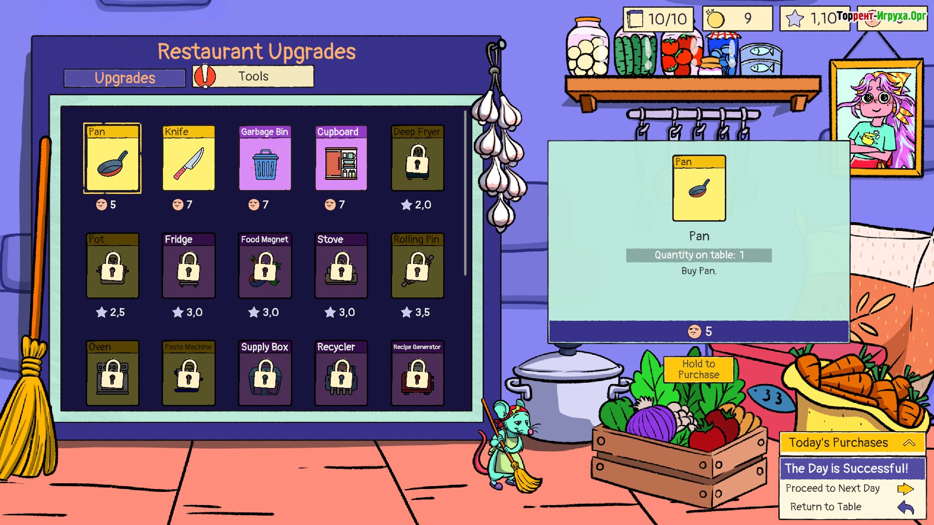 В процессе игры открываются редкие ингредиенты и возможности для модернизации оборудования, что позволяет расширять и усовершенствовать кухню. От простого плита до полностью автоматизированной системы — путь к вершинам ресторанного дела требует продуманной стратегии и гибкости в действиях.