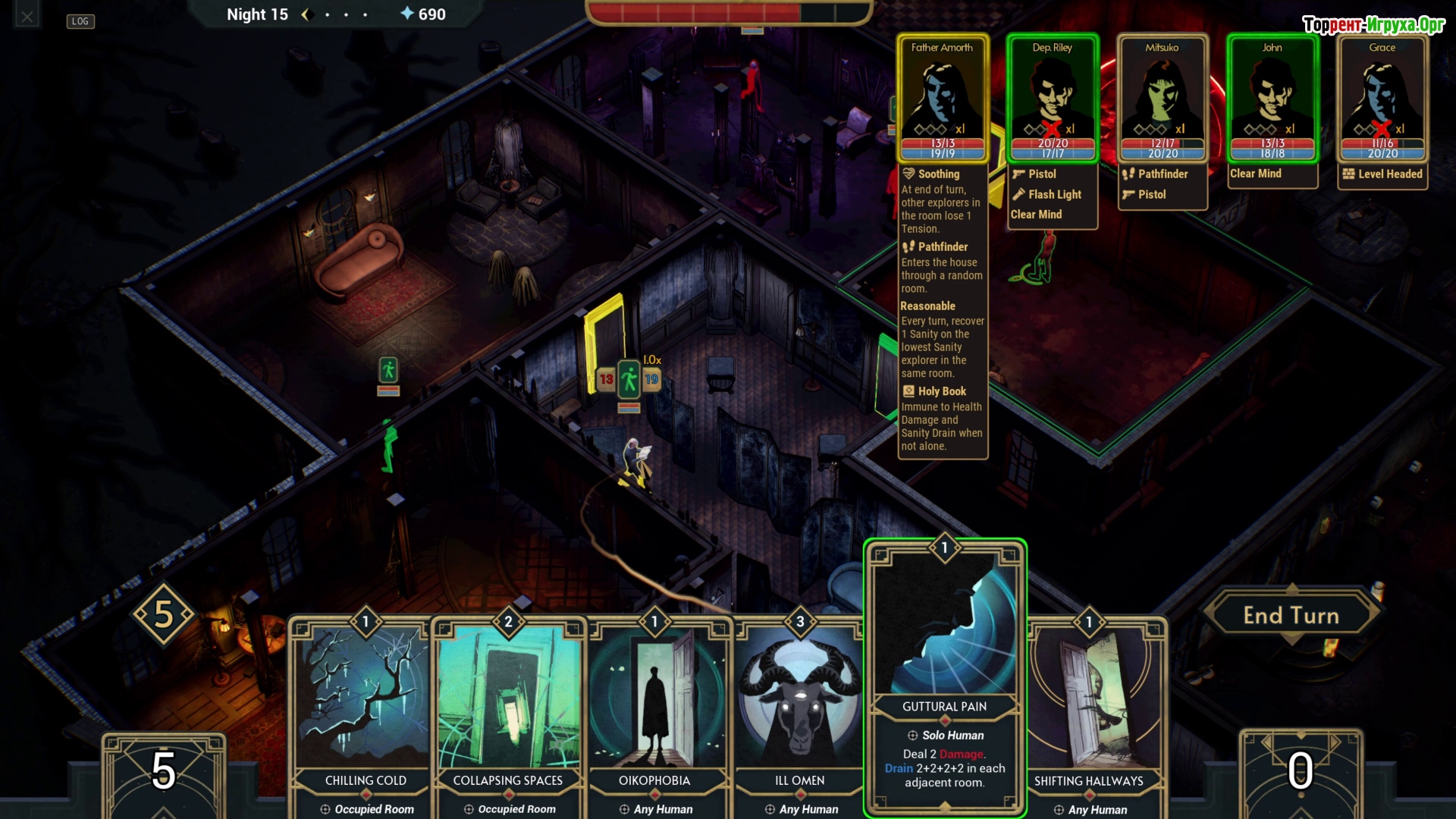 Для достижения цели придётся днём создавать запутанные комнаты и лабиринты, превращая особняк в смертоносную ловушку, а ночью охотиться на бесстрашных посетителей. Deck of Haunts предлагает интересные механики, включая открытие новых карт и возможность поглощать души, что позволяет постепенно расширять и совершенствовать ваше проклятое убежище.