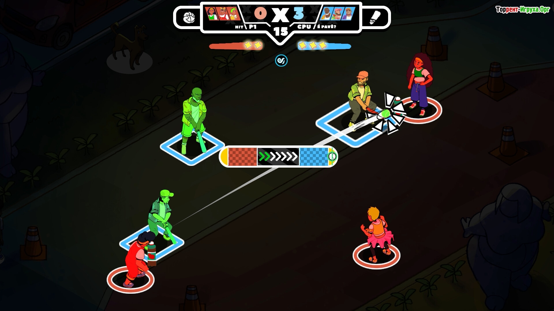 Зарабатывайте очки, открывайте новые команды и находите эффективные тактики для победы в каждом матче. Изометрическая графика насыщена яркими цветами, а энергичный чиптюн-саундтрек создаёт атмосферу настоящей уличной вечеринки, погружая в дух игры.