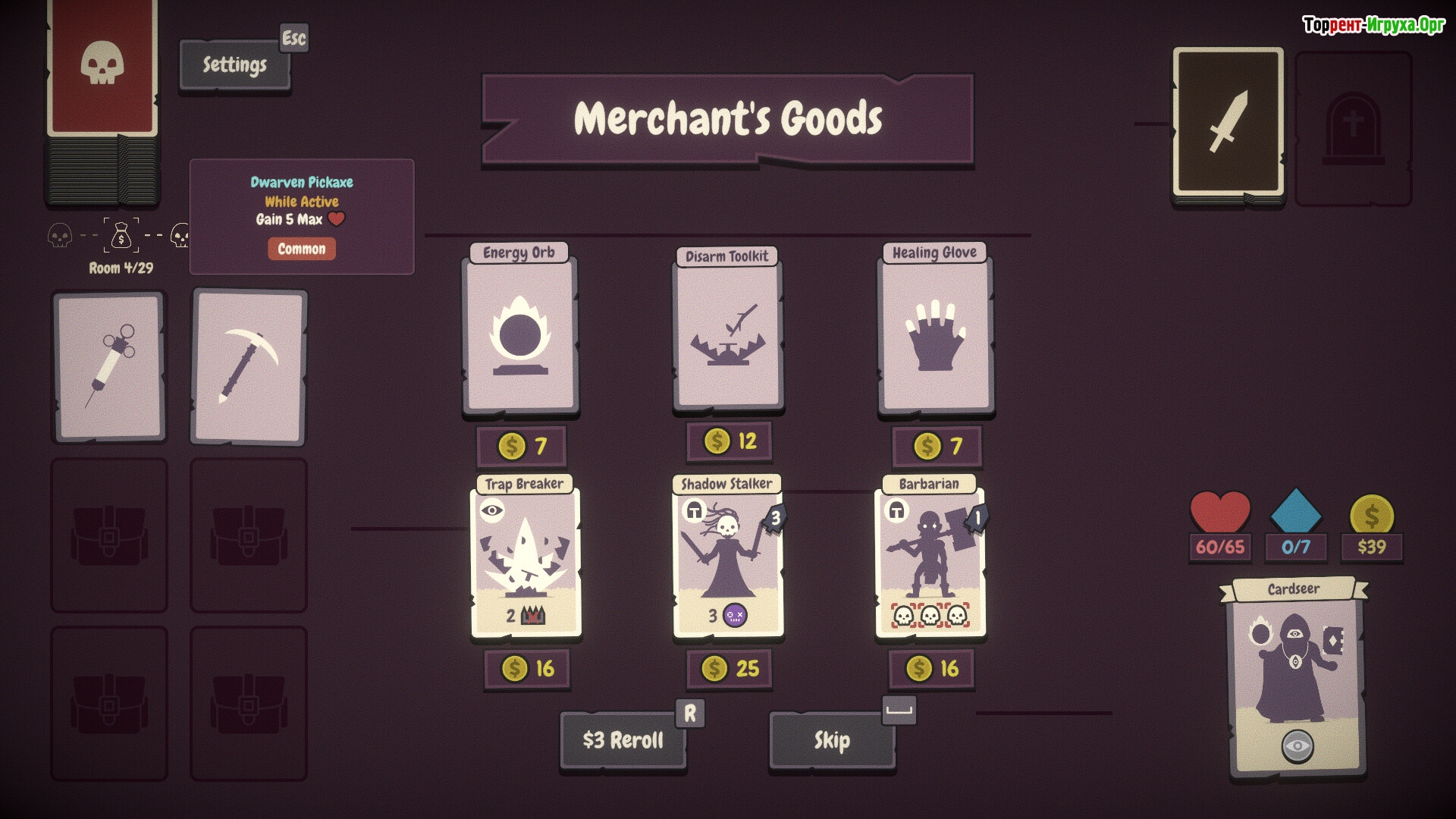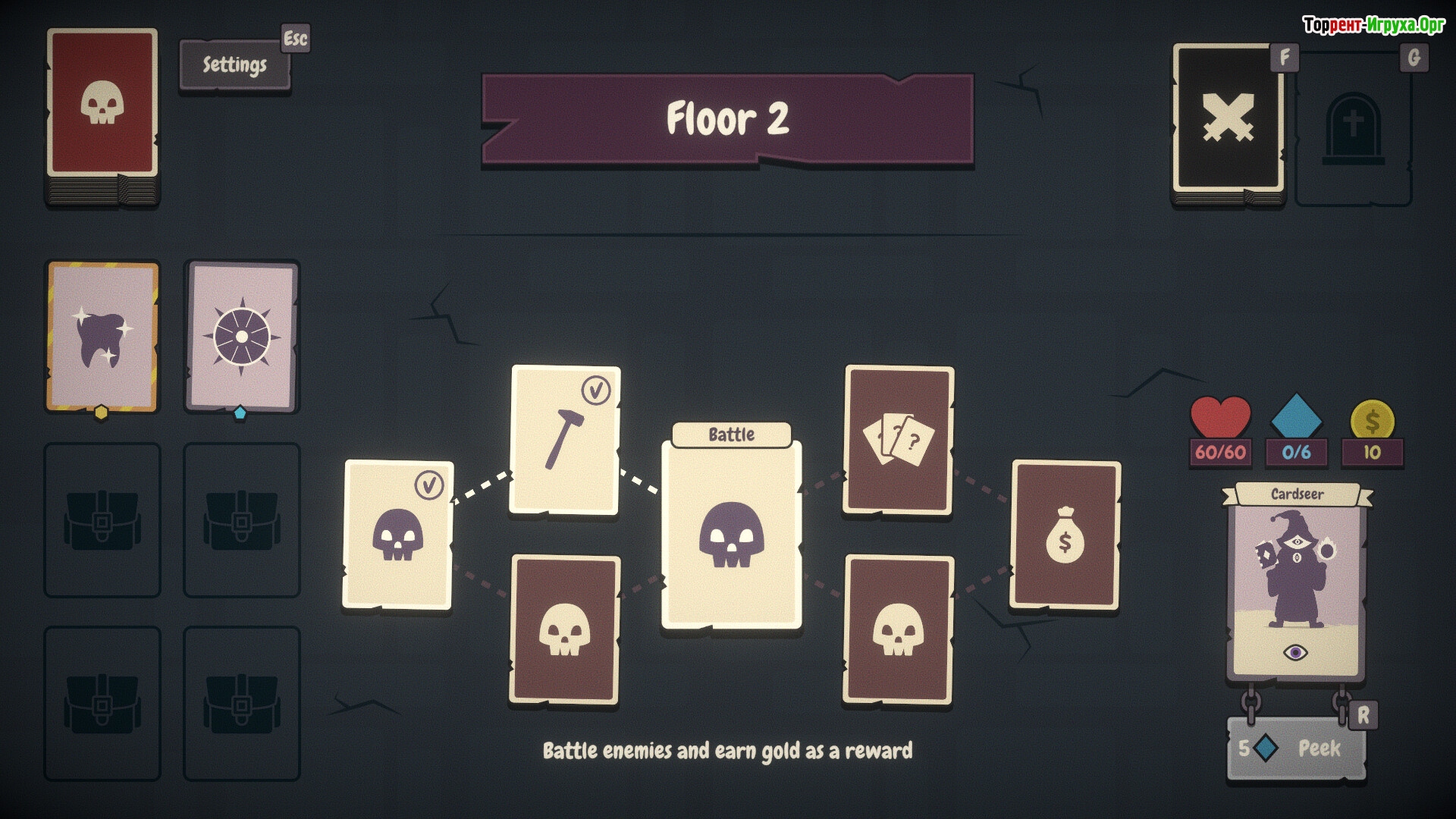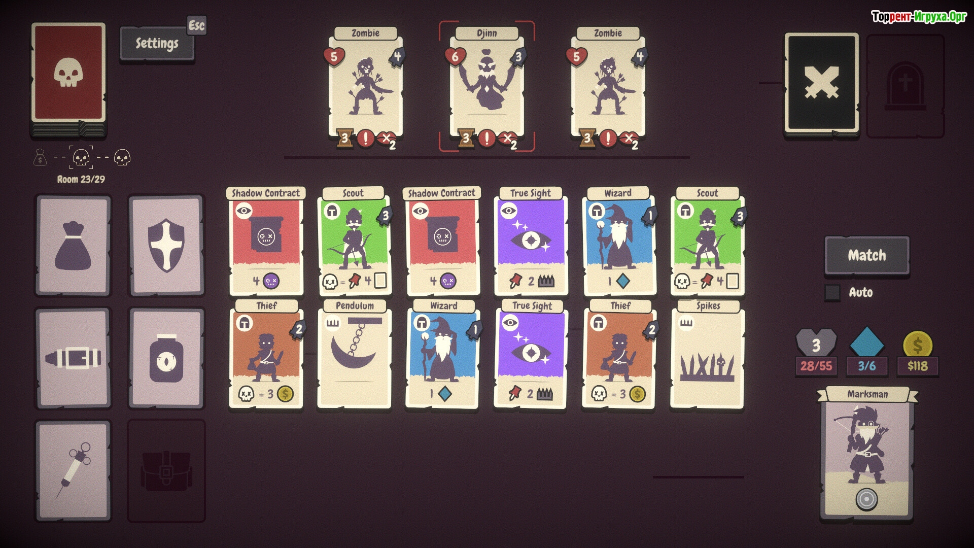 Pairs & Perils — это классический рогалайт, разработанный Little Horror Studios и выпущенный в 2025 году, сочетающий элементы игры на память и исследование подземелий. В этой игре вы сопоставляете карты для атаки врагов, обходите ловушки и собираете различные реликвии и предметы, чтобы увеличить шансы на выживание. Необходимо внимательно изучать расположение карт и находить Торговца, чтобы оптимизировать свой арсенал и стратегии.