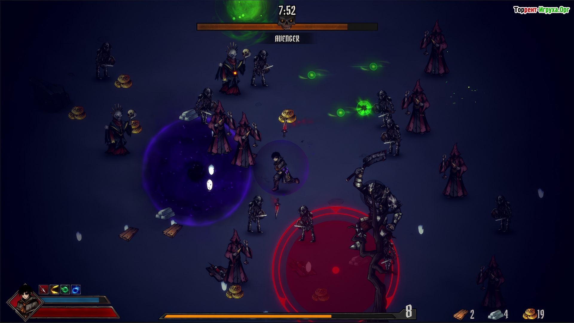 Whacking Hell! от Sanuk Games — это захватывающий двухмерный шутер с видом сверху, который сочетает динамичный геймплей и механики рогалика. Действие игры разворачивается после открытия адских врат, и ваша задача — уничтожить орды монстров, чтобы выжить в этом безумном мире.