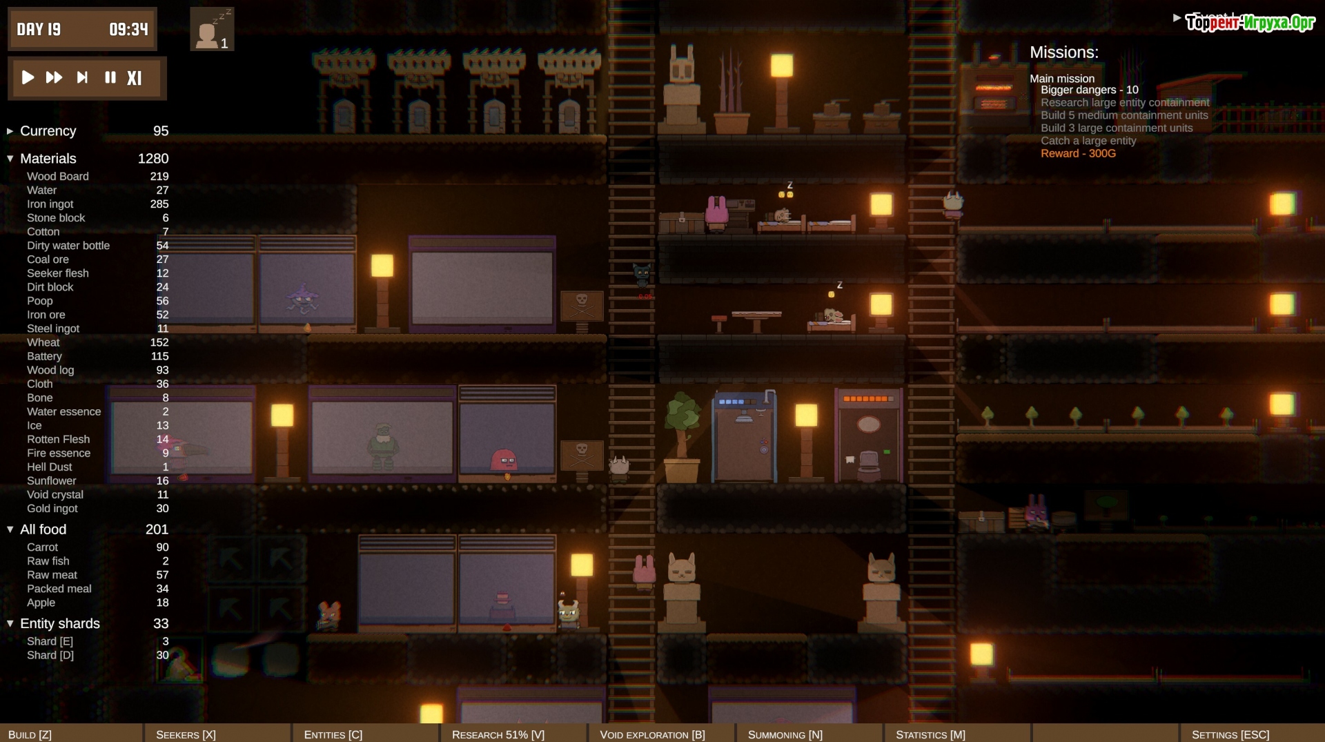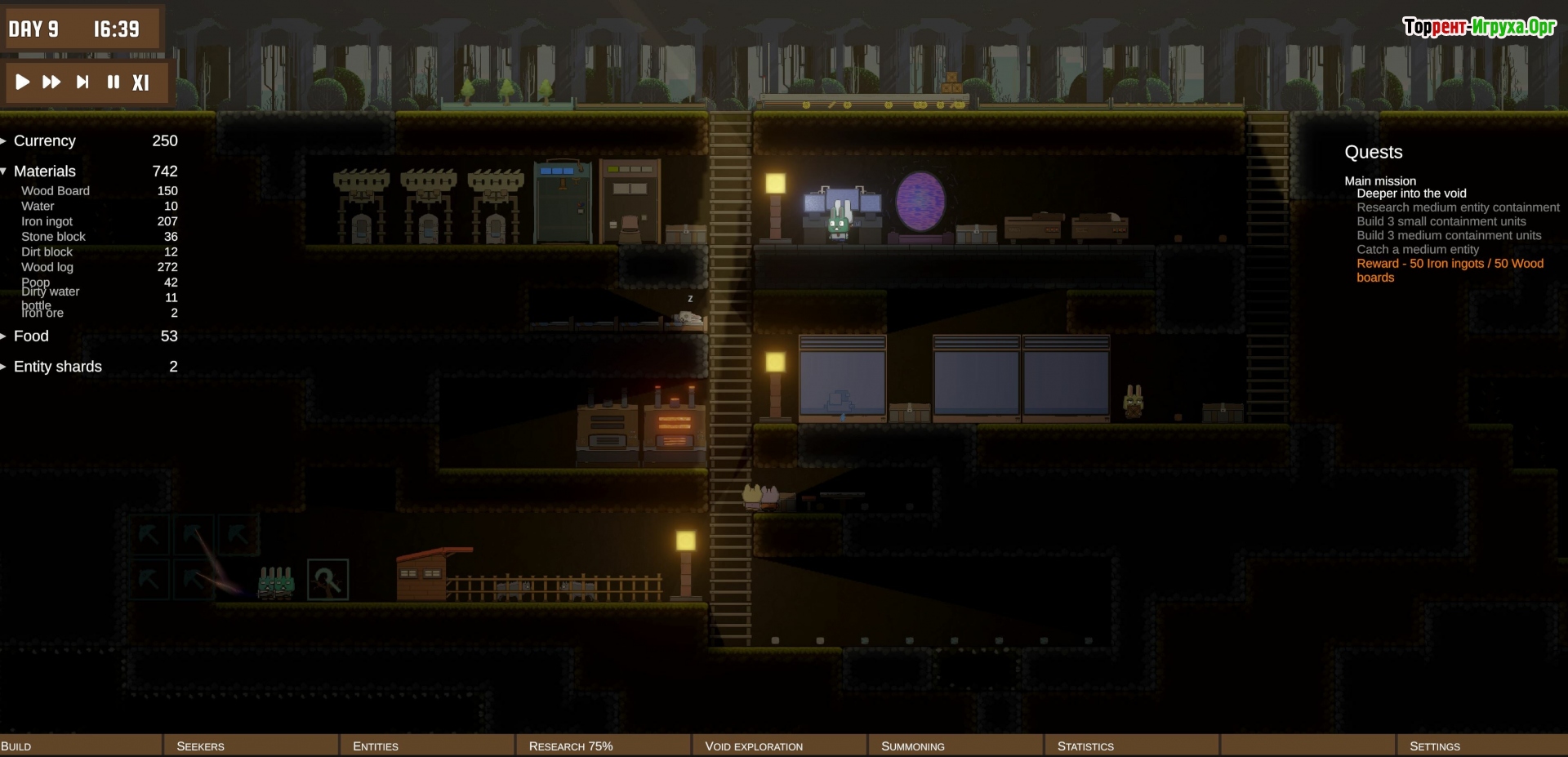 Особое внимание уделяется исследованию опасных разломов пустоты, где обитают страшные существа и хранятся древние артефакты. Эти тайны могут как укрепить вашу колонию, так и привести её к гибели. Игра предлагает захватывающий баланс между строительством, изучением неизведанных территорий и борьбой с аномальными угрозами.