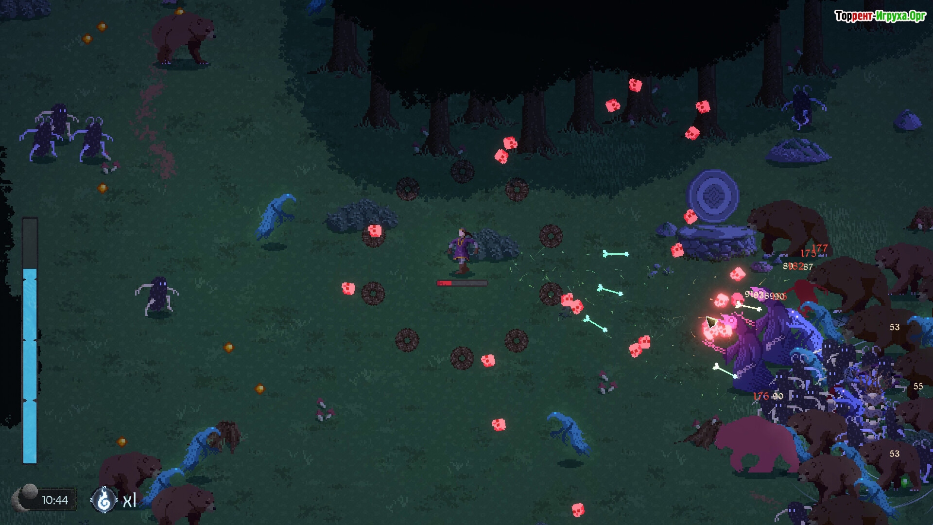 Такие игры всецело тащит прокачка, но тут она всратая. За каждую смерть дают +1 ягоду, которую ты вкладываешь в прокачку атрибута. Хп, кулдауна, мувспида и тд. Но это НАСТОЛЬКО долго, что ты физически не чувствуешь своего прогресса.