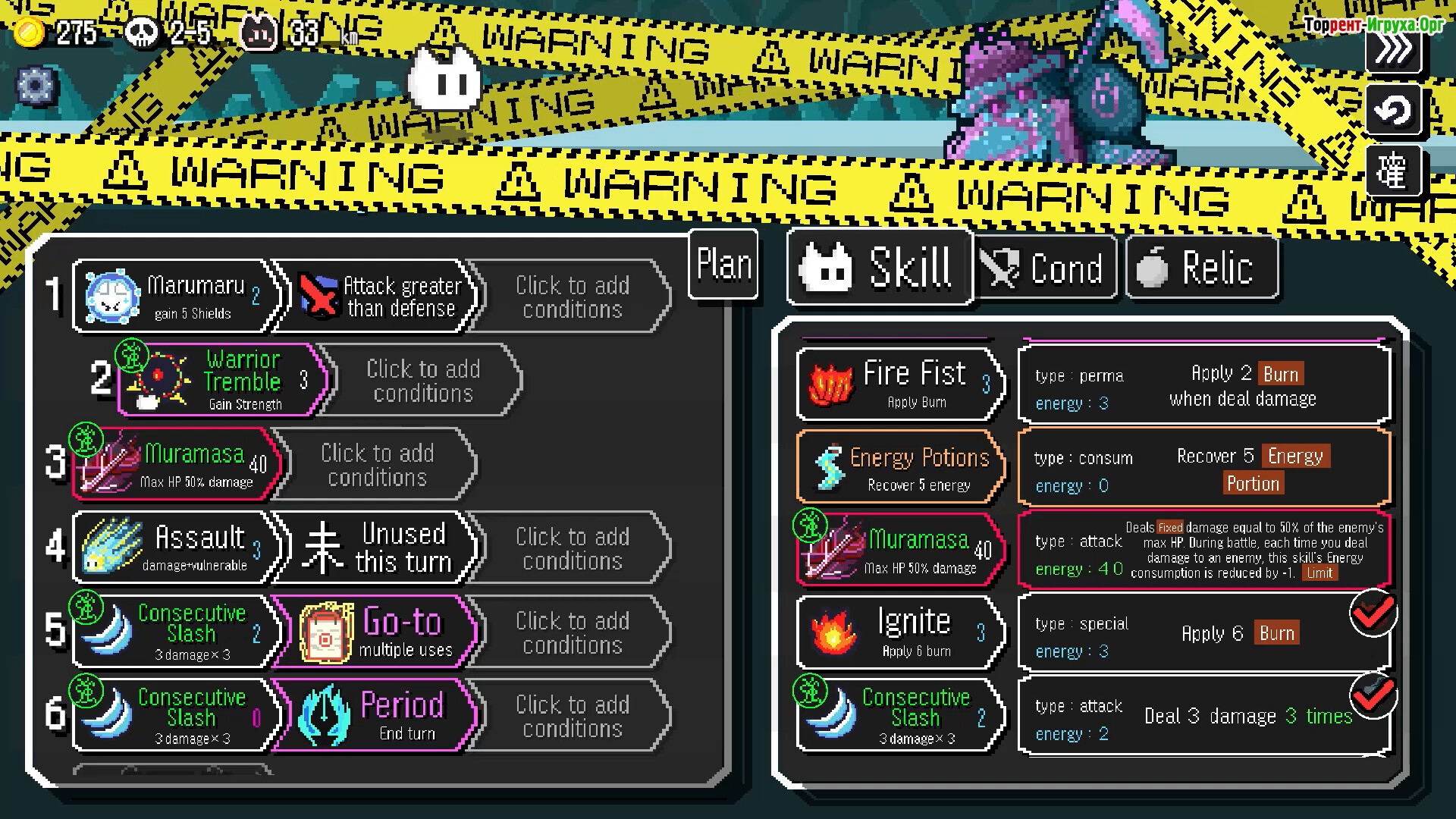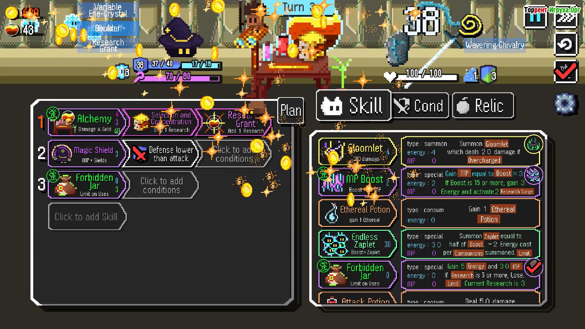 Стратегия и автоматизация — главные элементы геймплея Auto Rogue. Развивайте комбинации навыков, которые срабатывают при определённых условиях: усиливайте урон ценой здоровья или запускайте цепные реакции, создавая сложные тактические взаимодействия. Каждый бой отражает ваш подход к планированию ещё до начала битвы, делая управление навыками критически важным.