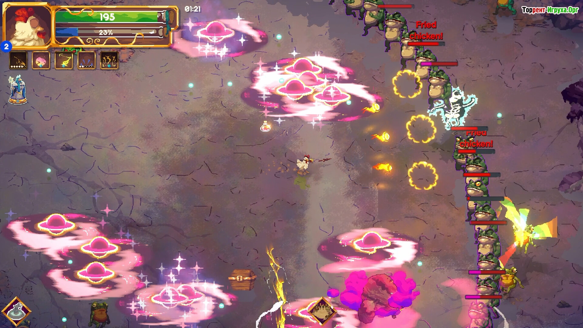 Игра ставит перед игроком серьёзные испытания: монструозные боссы, исполинские твари и разрушающаяся реальность требуют продуманного выбора заклинаний и артефактов. В Machick 2 случайностей практически нет — только сила воли и мастерство магии определяют, сможет ли курица выжить и вернуть порядок в хаотичный мир.