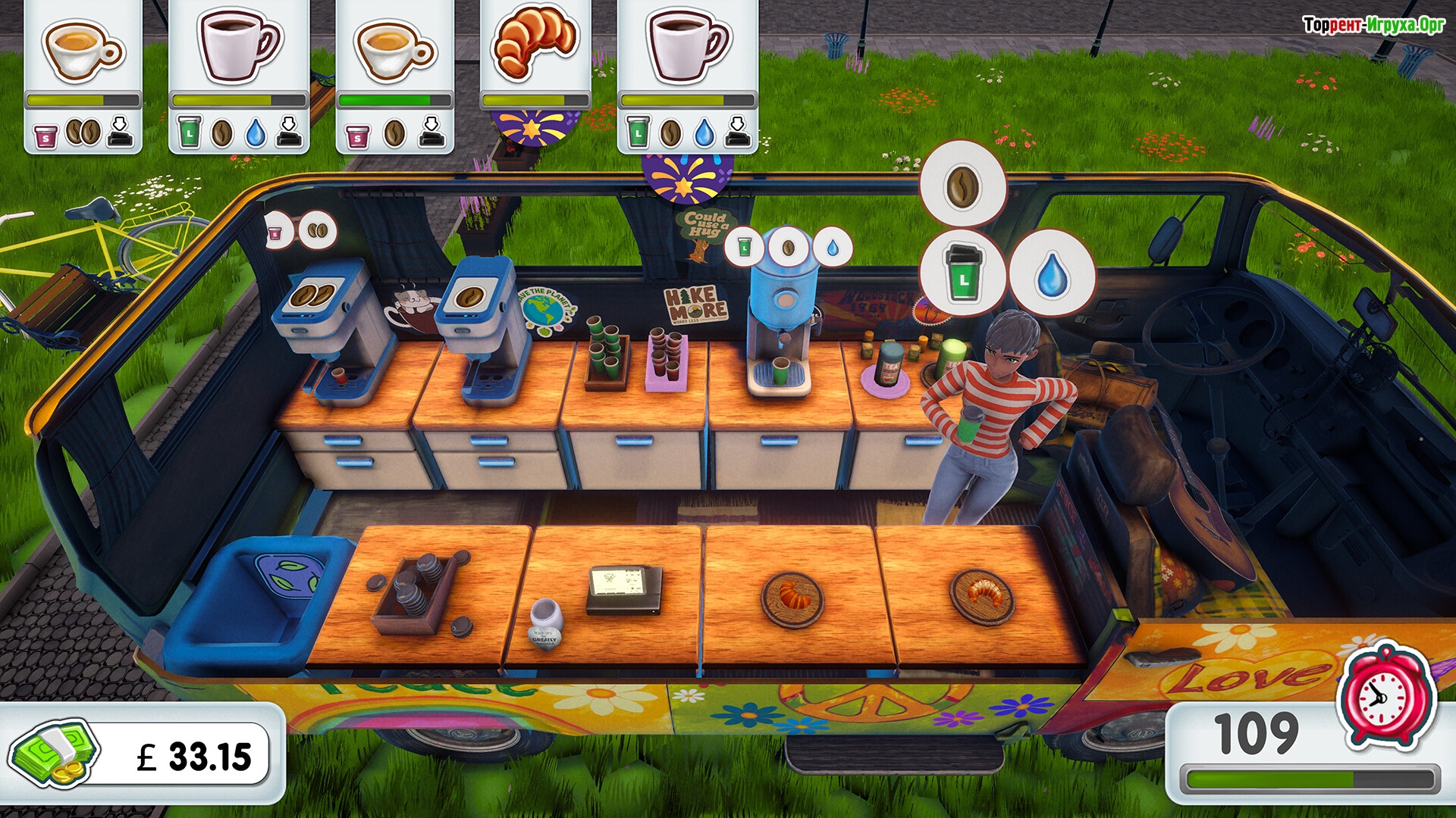 Для успеха в игре придется постоянно обновлять оборудование и расширять функционал кухни, что позволит улучшать производительность и развивать свой бизнес. Вас ждет захватывающее кофейное приключение с возможностью возводить кафе с нуля, исследовать новые локации на Британских островах и грамотно управлять финансами, чтобы сделать свое заведение успешным и популярным.