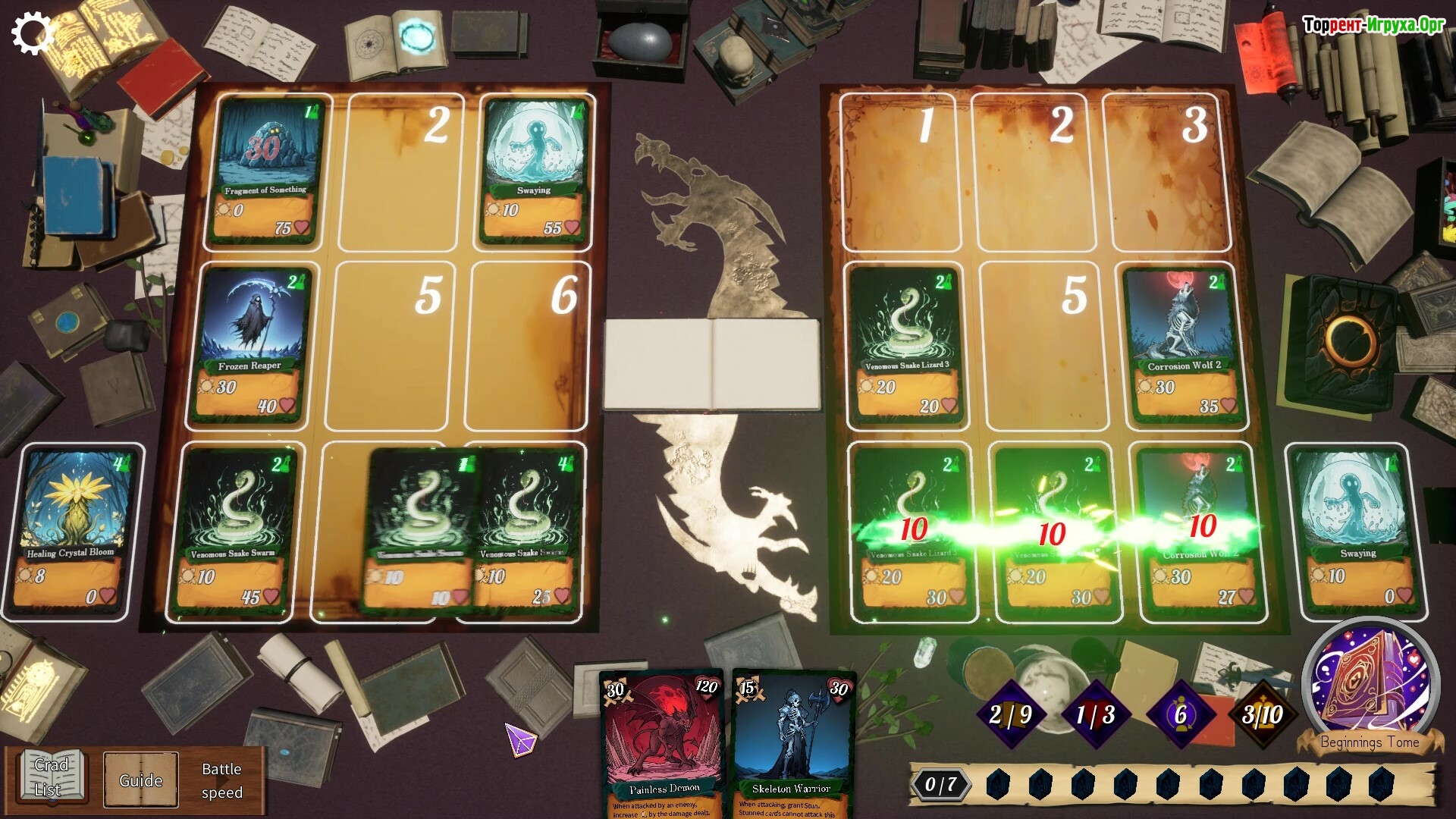 Из множества доступных карт формируется индивидуальная сетка, в которой важны сочетания по типу и цвету, а также выполнение особых условий для пробуждения скрытой силы. Каждое размещение влияет на эффекты и последовательность атак, что делает выбор стратегической позиции особенно значимым.