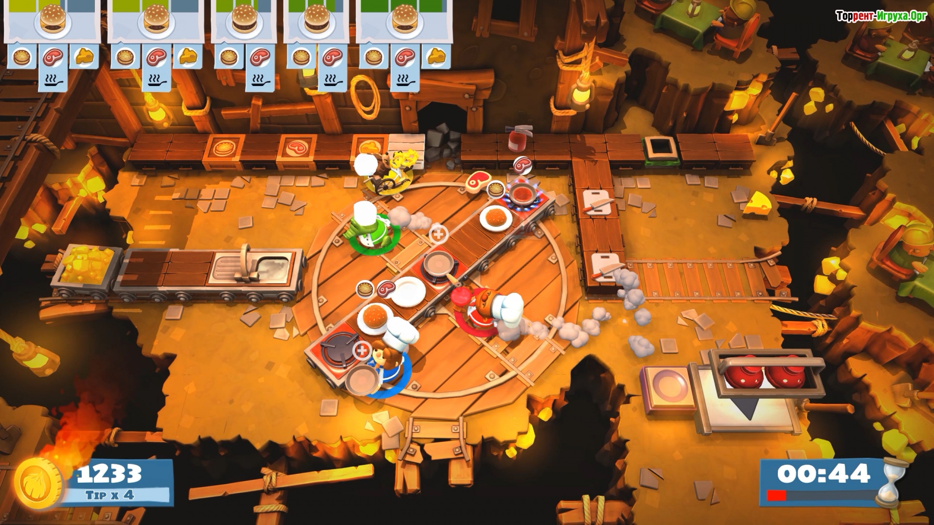 Overcooked! 2 — это захватывающая игра, разработанная Ghost Town Games Ltd. и выпущенная Team17 в 2018 году, которая подарит вам массу веселых моментов. Здесь вы берёте под управление кухню кафе, превозмогая все препятствия и активно используя каждый шанс, чтобы успевать обслуживать всех клиентов. При этом расслабляться не стоит, ведь игра полна сложных испытаний, требующих быстрой реакции и координации.