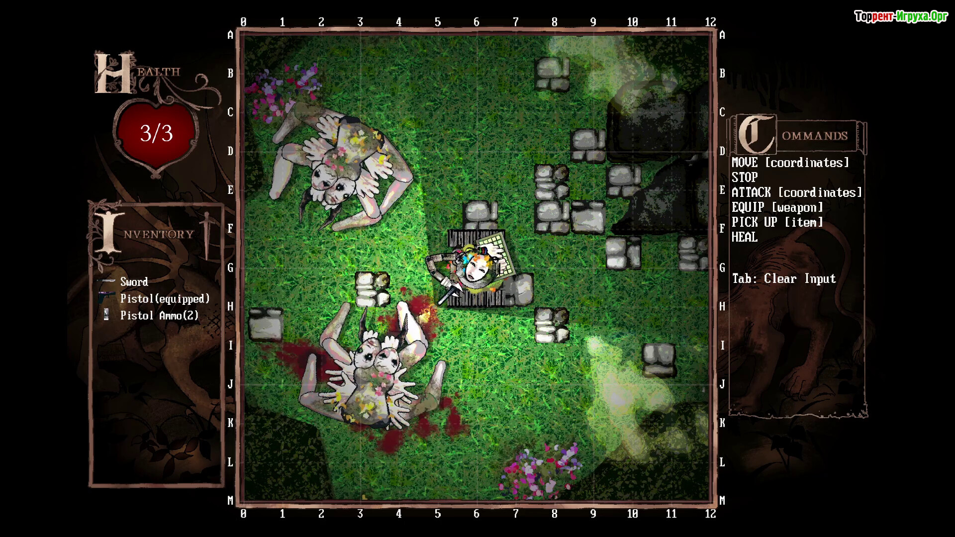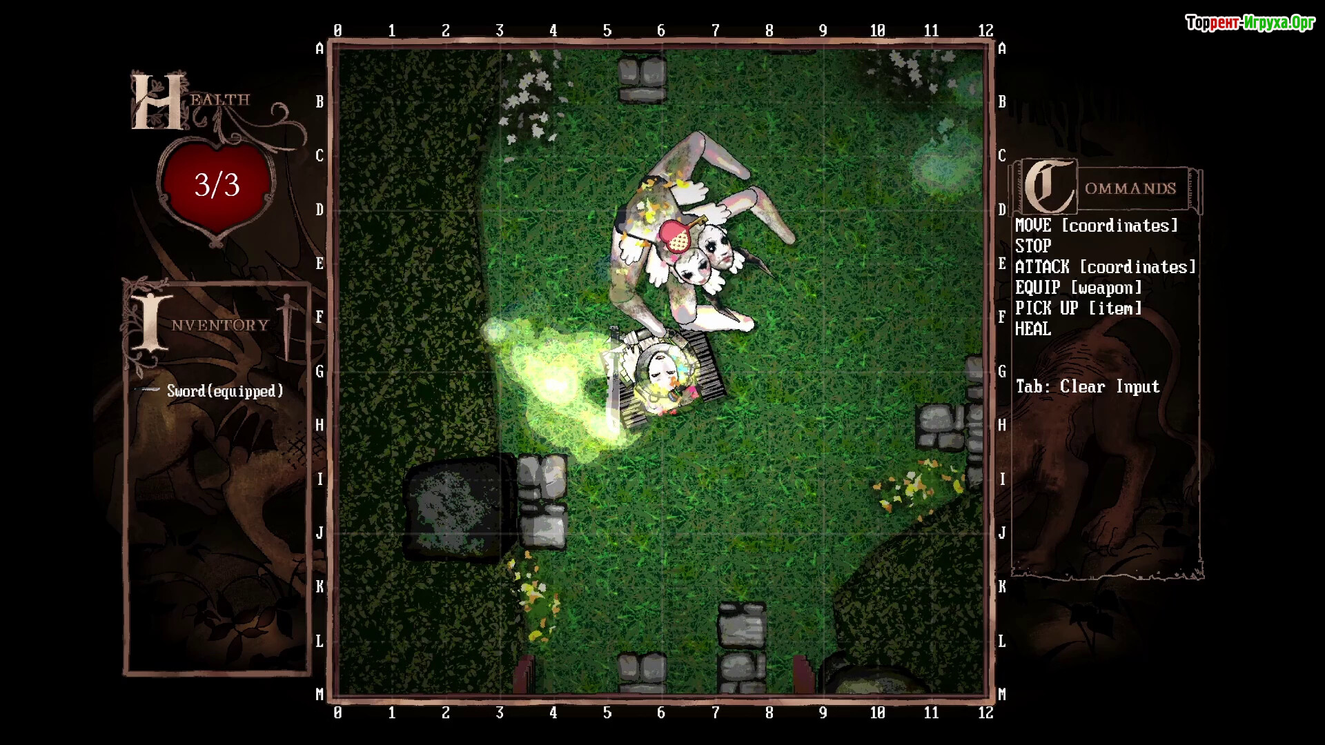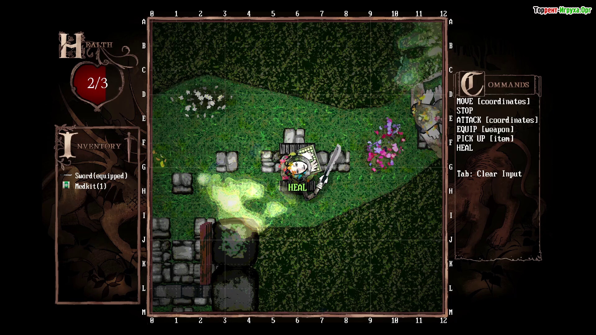 Управление движением и атаками через набор текста.