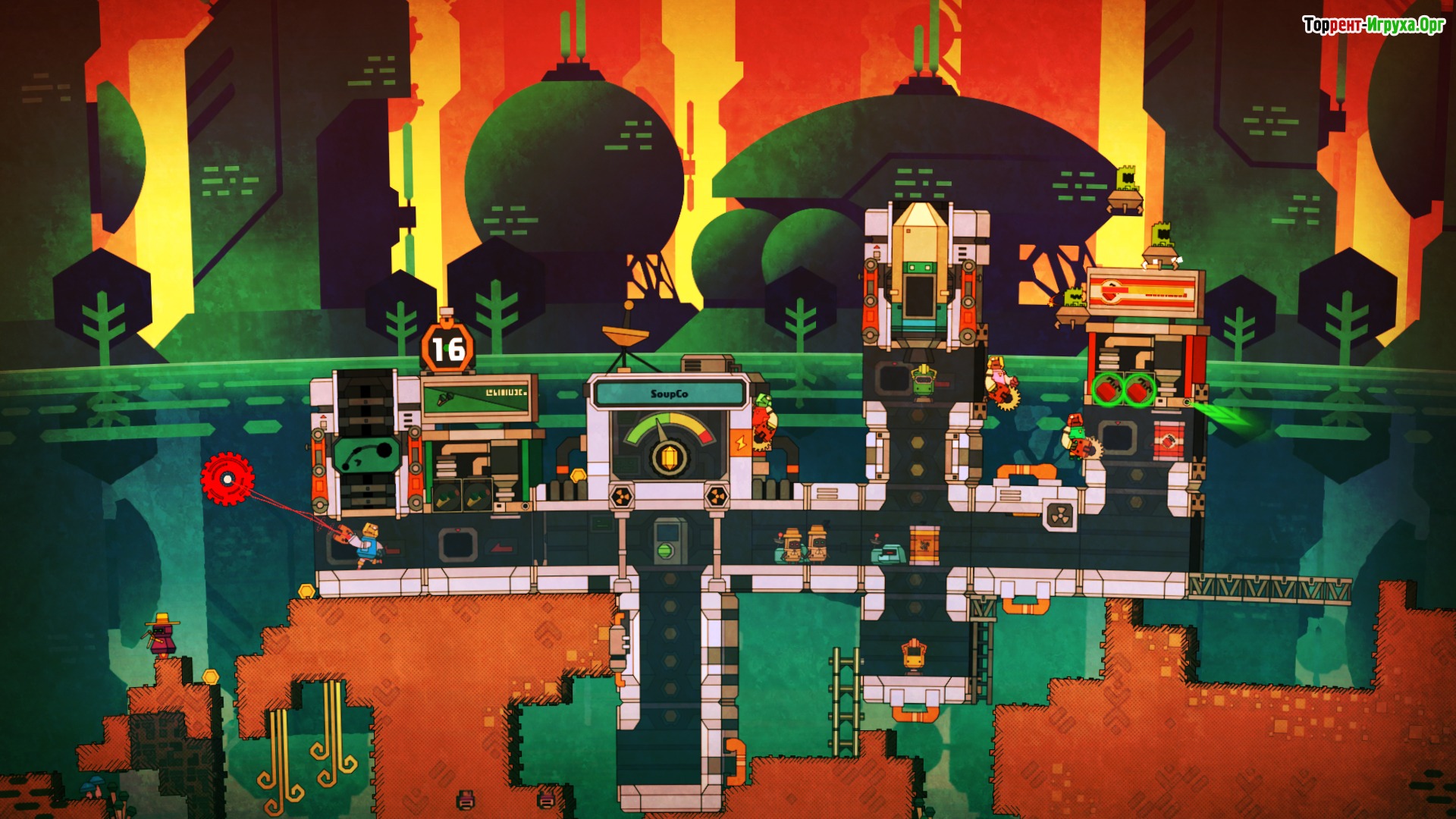 PixelJunk: Nom Nom Galaxy от Q-Games Ltd., выпущенная в 2015 году, сочетает в себе двухмерную графику, элементы экономики и песочницу, предлагая игрокам уникальный опыт управления производством. В этой игре вам предстоит стать предпринимателем, построить большую фабрику и создавать вкусные супы для инопланетных существ. Герой свободно перемещается по карте, используя многофункциональный лазер для разрушения объектов, которые затем превращаются в ресурсы для строительства базы.