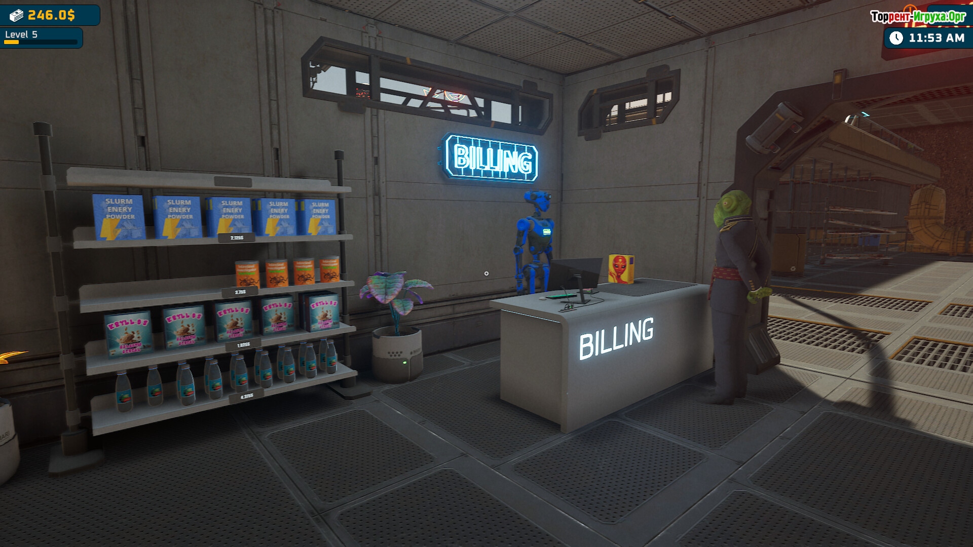 Alien Market Simulator предлагает глубокий геймплей с ремонтом и расширением станции, а также управлением товарами с сомнительной легальностью. Автоматизация процессов с помощью роботов облегчает уборку, доставку и обслуживание, но не забывайте о непростой бюрократии, которая постоянно усложняет вашу работу и требует грамотного подхода.