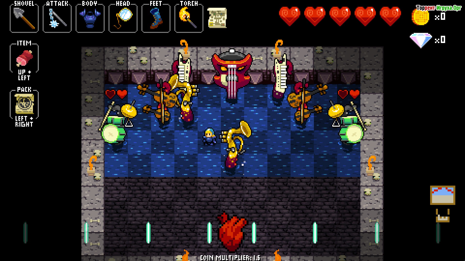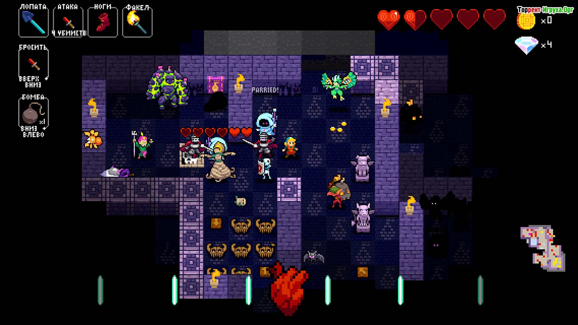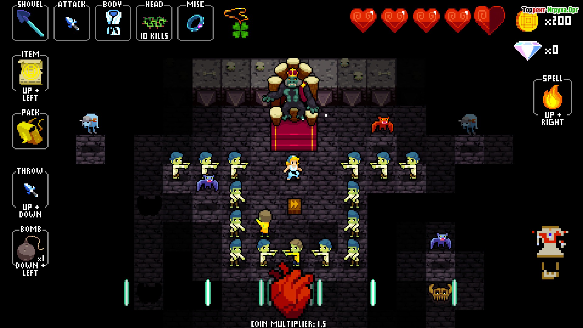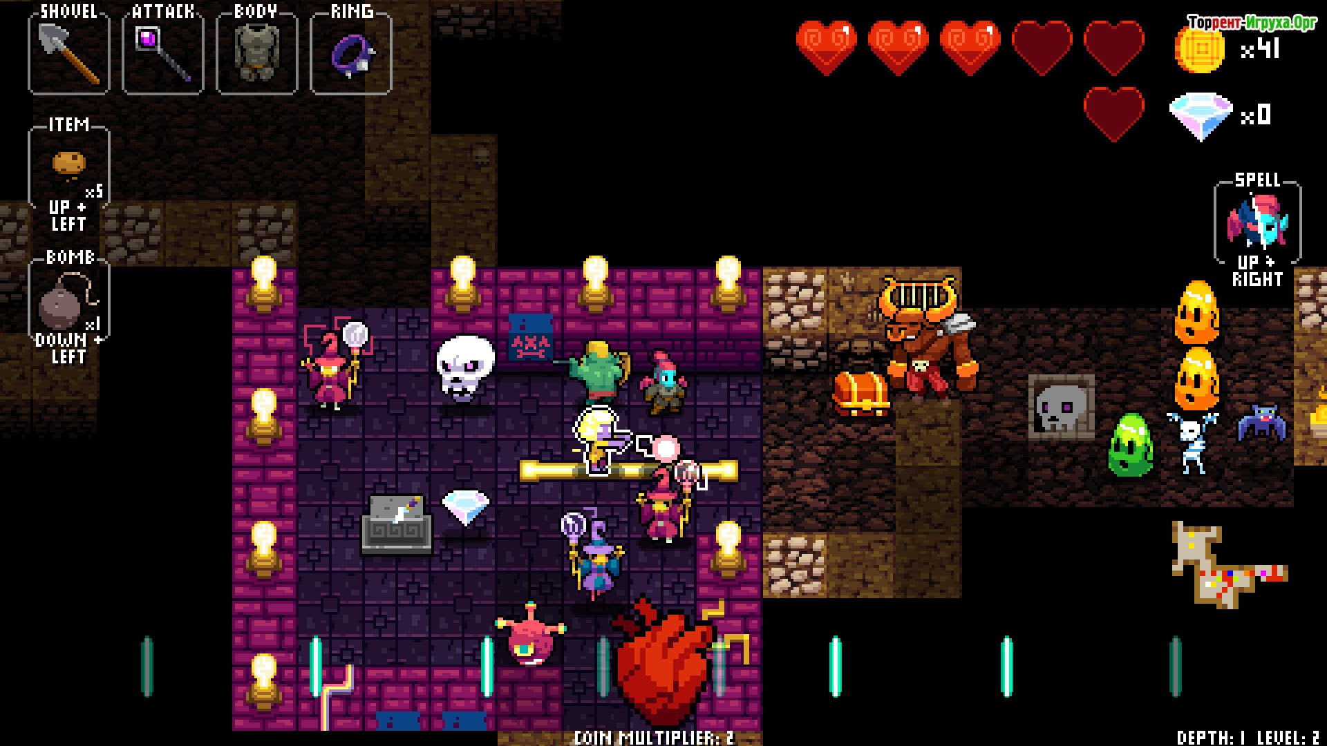 В арсенале Каденс разнообразное оружие и заклинания, которые понадобятся для прохождения множества уровней тёмных подземелий и сражений с устрашающими монстрами и боссами. Игрокам предстоит выстраивать правильные комбинации и использовать свои навыки, чтобы добиться победы и раскрыть тайну NecroDancer. Если вы поклонник нестандартных ролевых игр с музыкальными элементами, стоит скачать Crypt of the NecroDancer и окунуться в этот неповторимый мир на ПК.