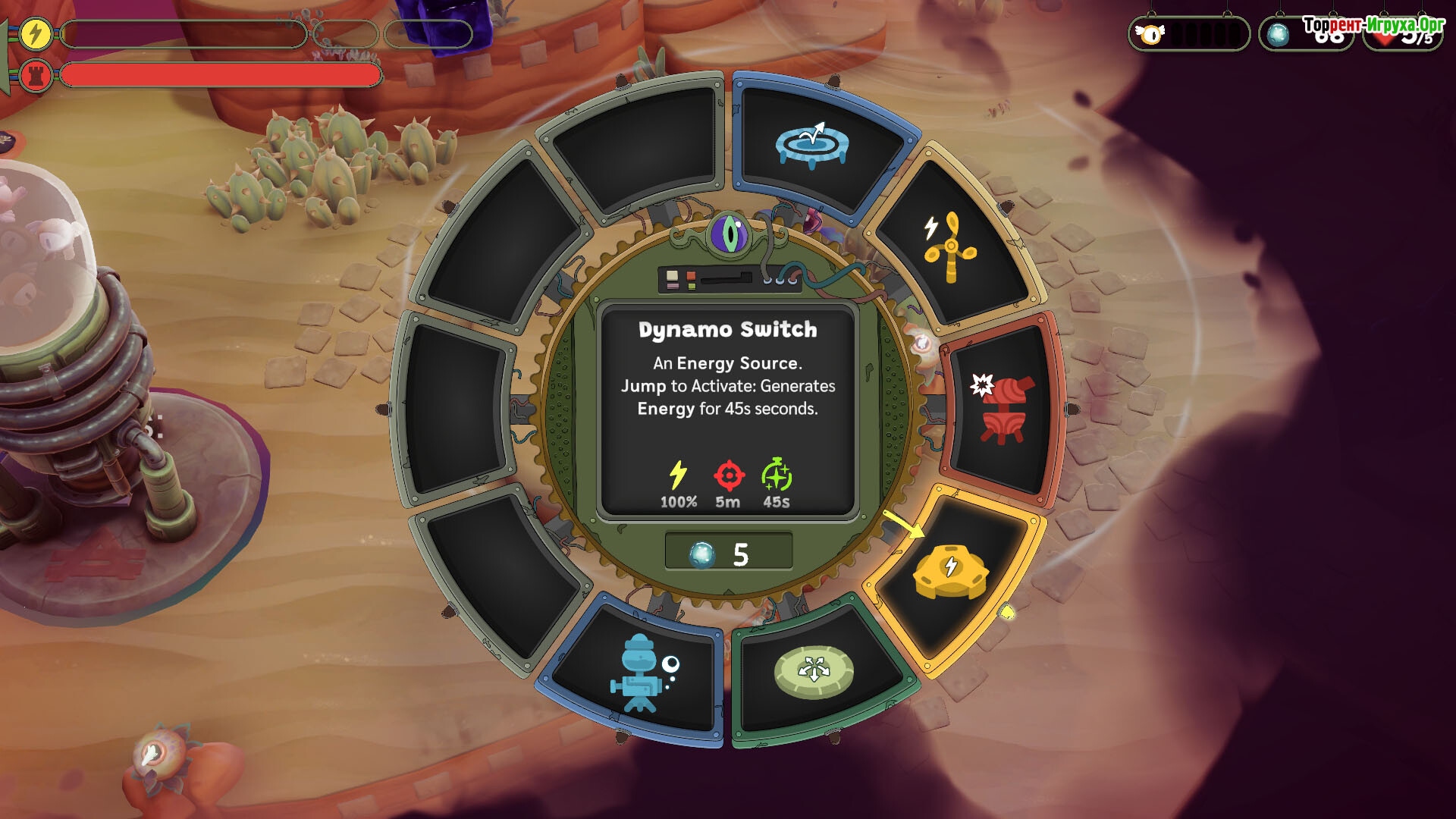 На поле боя доступен широкий арсенал забавных устройств — турели-жукобои пылают огнем по врагам, трамплины помогают оперативно перемещаться между уровнями, а ловушки требуют ручного управления. Даже пузырьки служат необычным оружием, отражая удары обратно. В Tempest Tower игрок сам выбирает стратегию, превращая хаос сражений в победу.