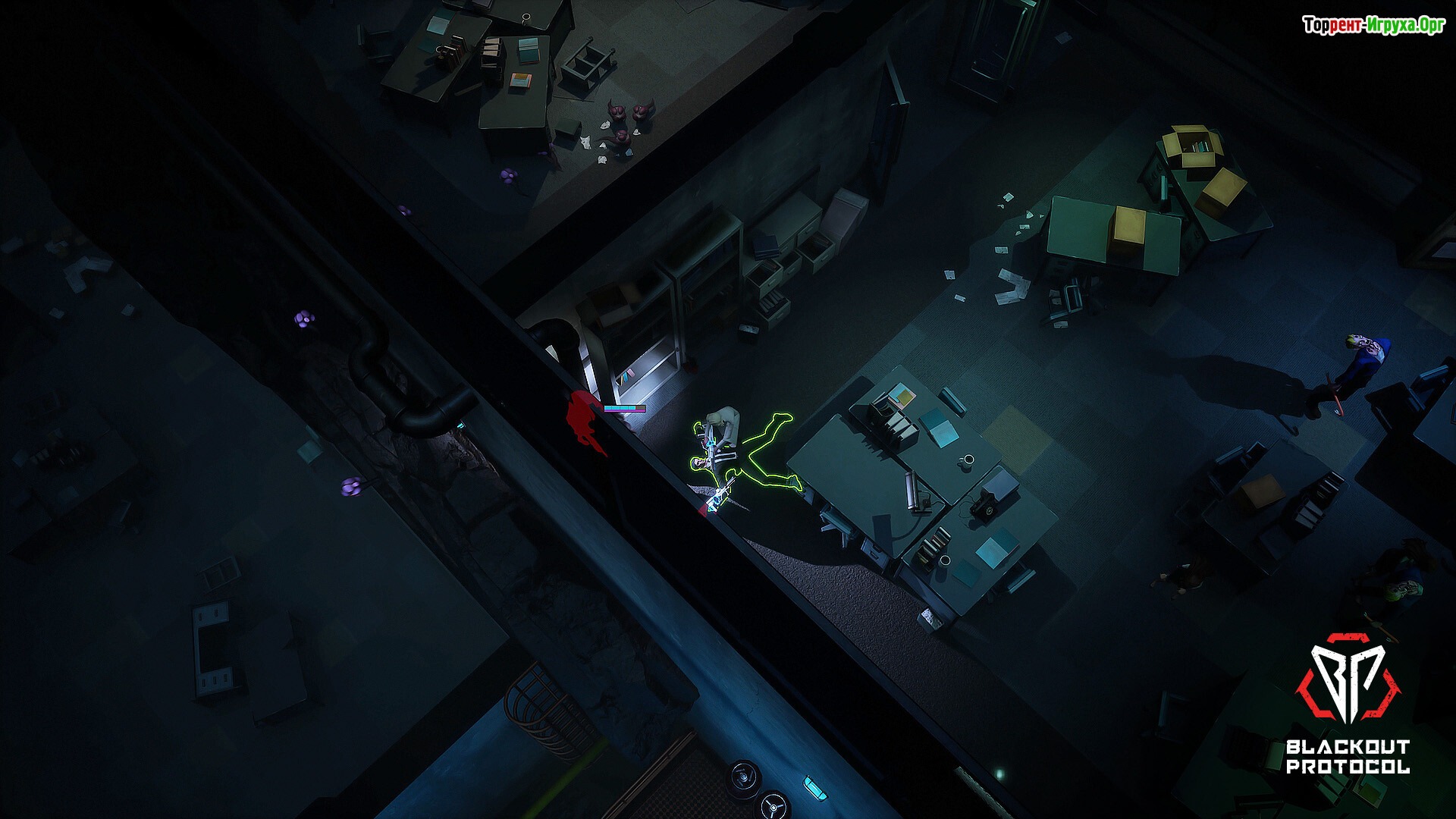 Blackout Protocol от Ocean Drive Studio, Inc., выпущенный в 2023 году, представляет собой классический шутер с видом сверху и элементами рогалика. В этой игре игроки вместе со своей командой отправляются в таинственный исследовательский центр, где столкнутся с паранормальными явлениями. Вам предстоит вооружиться и продвигаться вперёд, сталкиваясь с опасностями, умирая и повторяя попытки, чтобы раскрыть все секреты этого жуткого места.