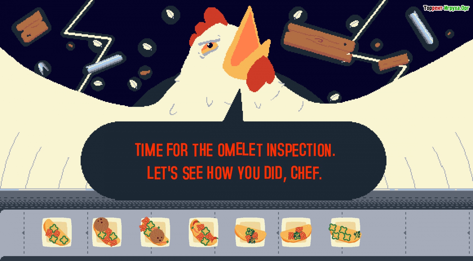 Приготовление блюд похоже на дикий танец: ингредиенты, от авокадо до мороженого и кактуса, словно мчатся по конвейеру судьбы. Вы быстро комбинируете их, стараясь угодить даже самым странным клиентам с необычными запросами. Каждый заказ — это новый вызов, особенно если сегодня настроен сурово сам Директор Кудахт.