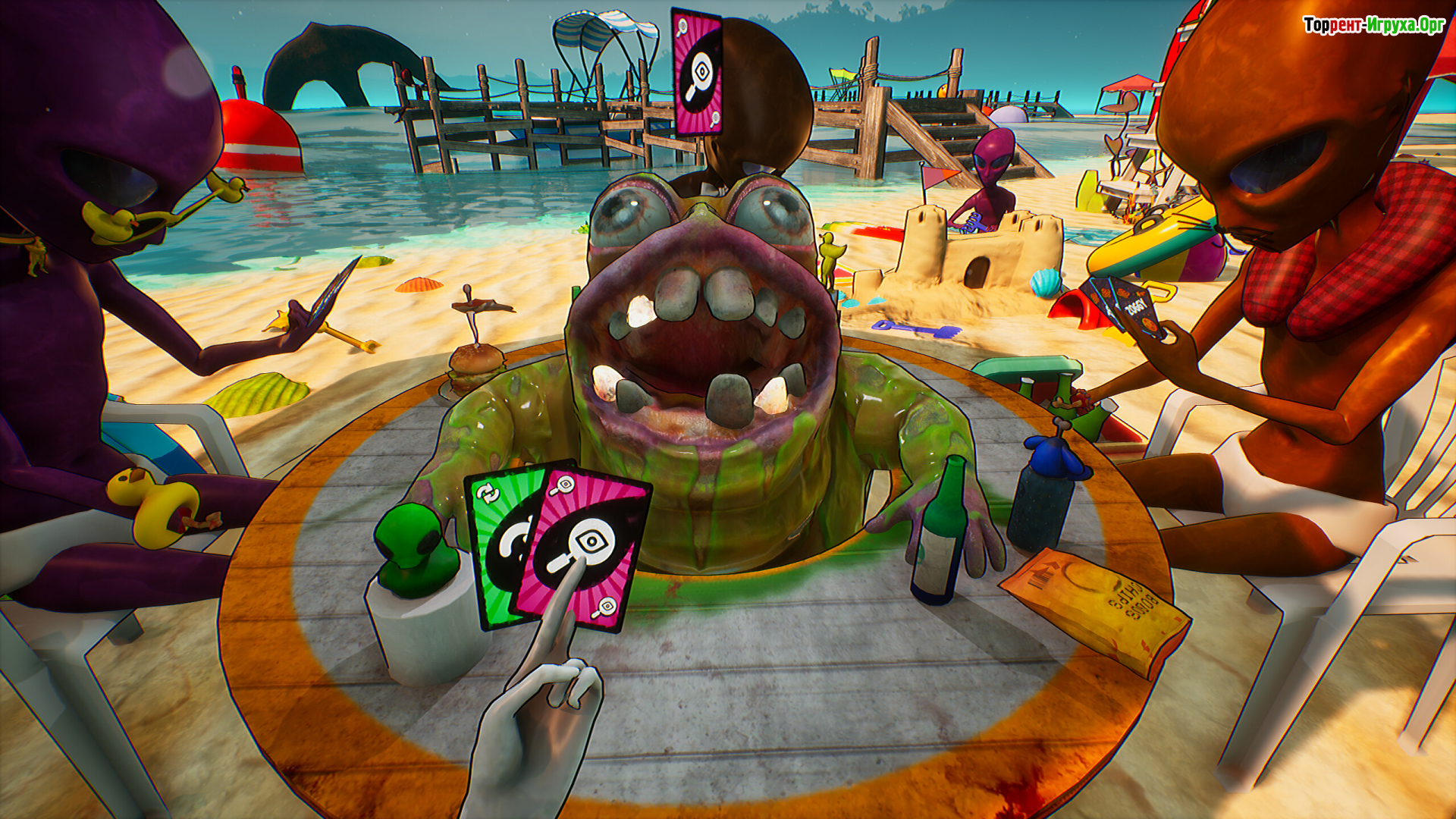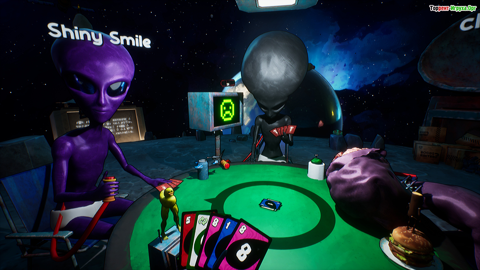 Bogos Binted предлагает онлайн-мультиплеер от первого лица на четырёх игроков, сочетая карточные режимы с риском и элементами блефа. Уникальный инопланетный юмор и непредсказуемые взрывоопасные ситуации делают эту игру по-настоящему захватывающей и забавной.