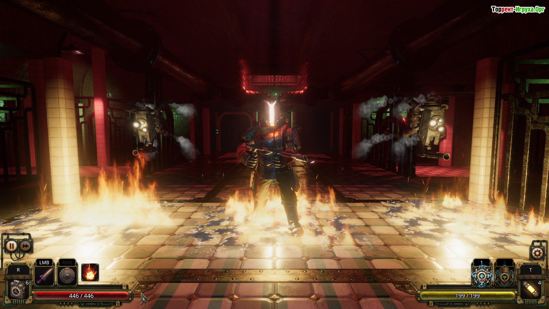 Vaporum: Lockdown — захватывающий приквел знаменитой игры от разработчика Fatbot Games, s. r. o., выпущенный в 2020 году. Действие переносит игроков в мрачные подземелья, выполненные в уникальном стимпанк стиле. В этом мире вас ждут встречи с опасными врагами, обладающими разнообразными атаками и способностями, требующими продуманного использования оружия и устройств для победы.