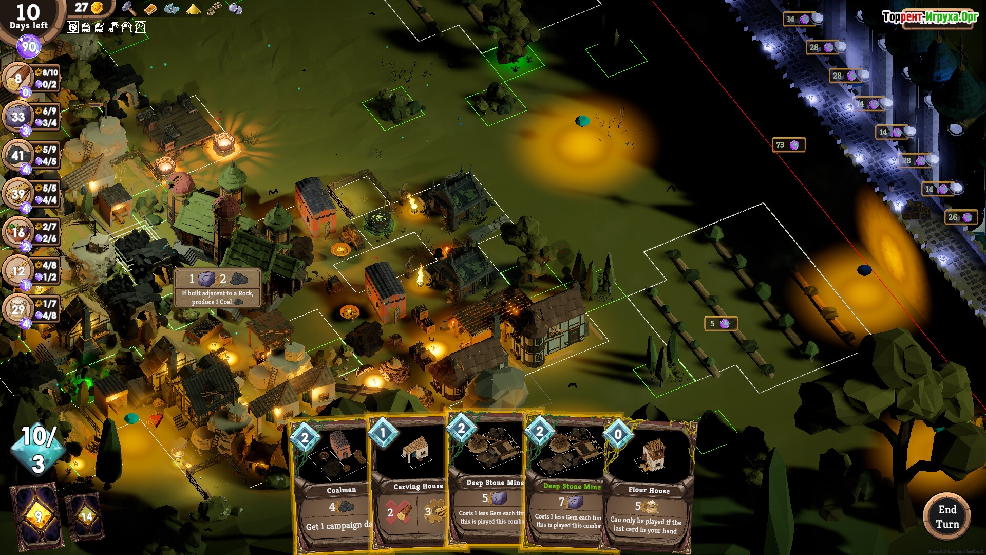 В процессе игры вы будете строить и развивать новые города, начиная с простых ферм и заканчивая индустриальными сооружениями. Карты играют ключевую роль, регулируя производство ресурсов, защиту поселения и жертвоприношения богам. Время здесь на вес золота — каждый ход приближает роковое затмение, заставляя тщательно планировать свои действия, чтобы укрепить позиции и выжить в сложных условиях.