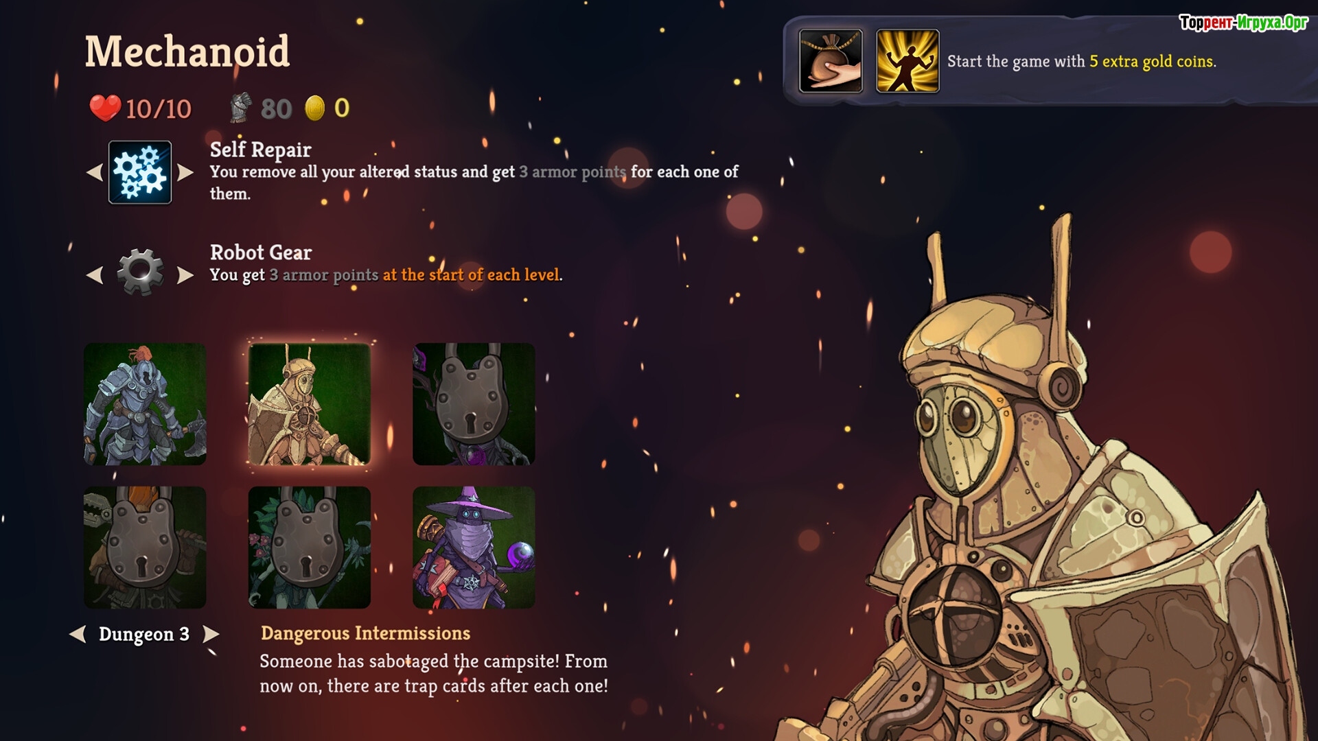 Right and Down от mc2games — это увлекательный рогалик с элементами карточной игры, выпущенный в 2022 году. Управление в игре предельно простое: достаточно нажимать только вправо и вниз. Начинается приключение с выбора уникального героя, после чего предстоит исследовать случайно сгенерированные подземелья и собирать мощные артефакты, чтобы усилить свою команду.