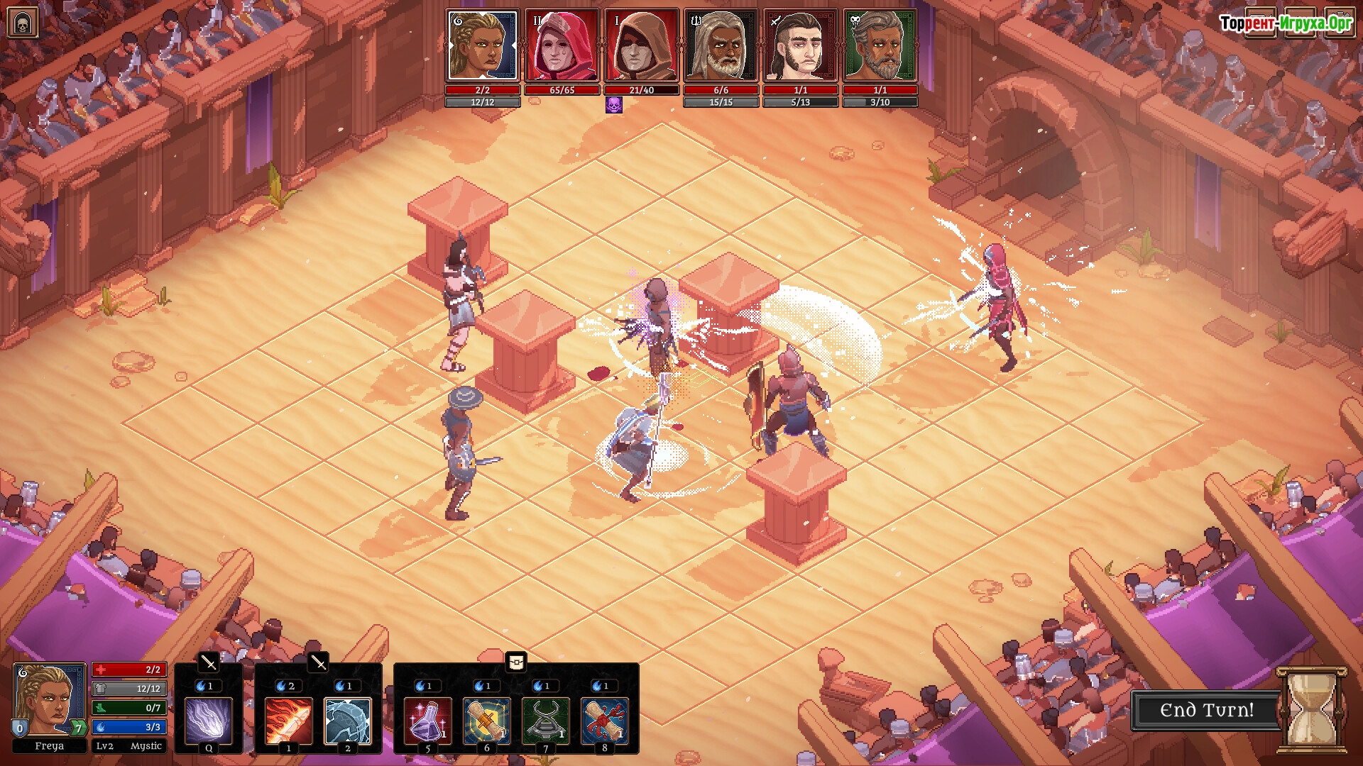 Bloodgrounds от Exordium Games предлагает уникальное сочетание пошаговых боёв на арене и элементов рогалика с градостроительным менеджментом. В центре сюжета находятся тактические сражения, развитие города и прокачка персонажей, что создаёт глубокий и захватывающий игровой процесс. В 2025 году эта игра раскрывает новые горизонты в жанре с ярко выраженной стратегической составляющей.