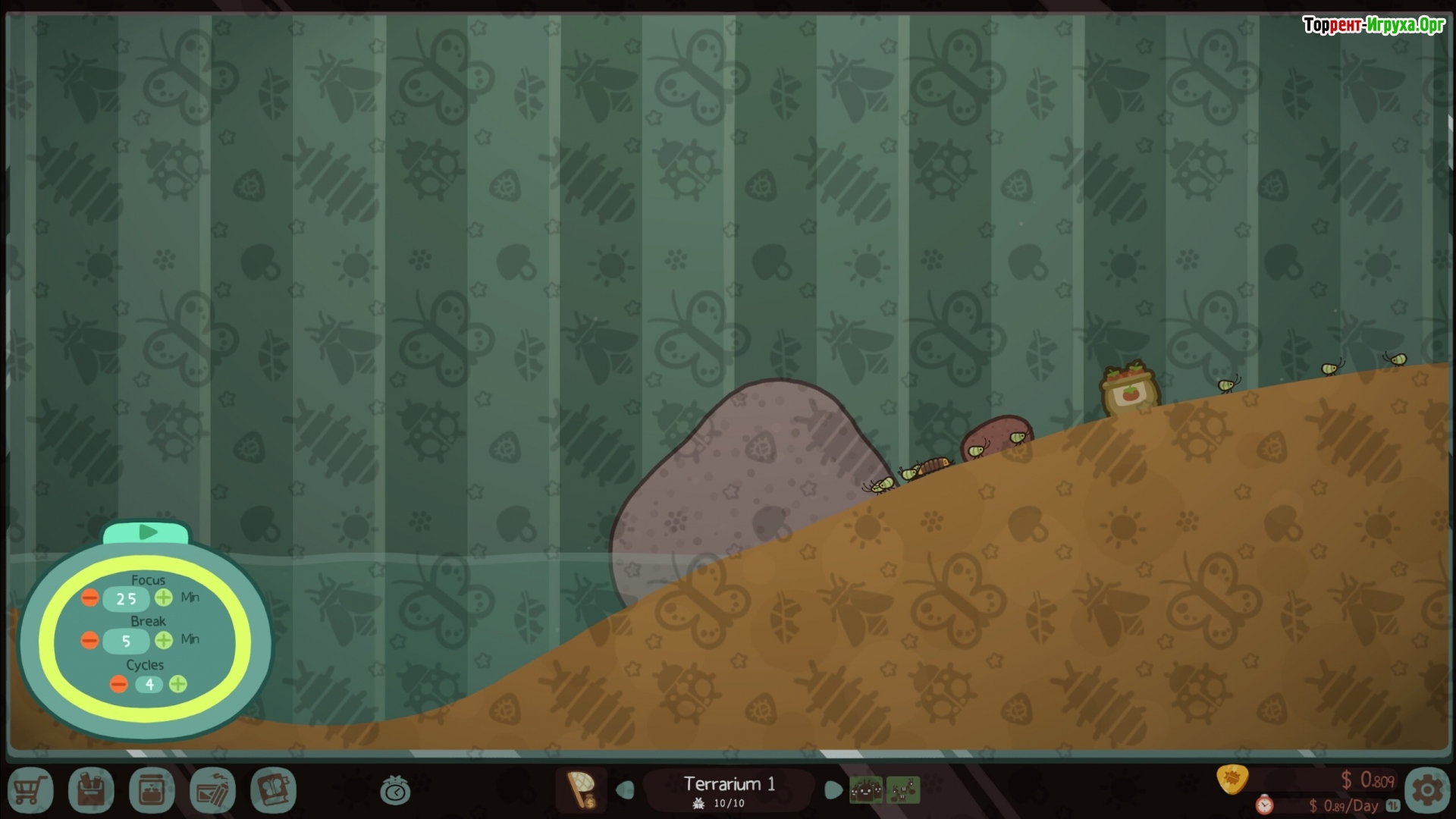 Игра позволяет украшать террариумы разнообразными растениями, камнями и декором, подбирая оптимальные сочетания почвы, фона и условий обитания. Чем более комфортна среда для жука, тем выразительнее его поведение. Расслабляйтесь, наблюдая за развитием своего живого мира и узнавая больше о природе.