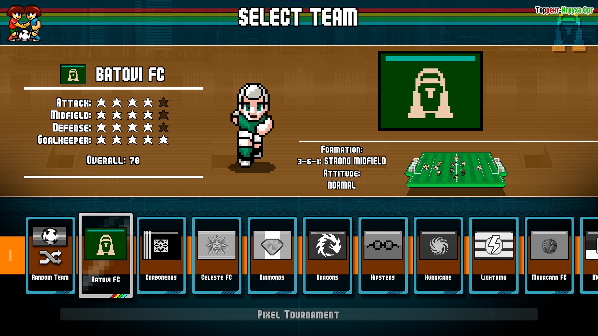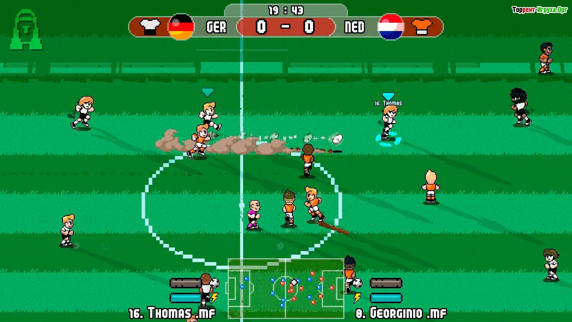 В игре предстоит быстро бегать, делать точные пасы и бороться за победу. Простое управление поможет быстро освоиться, но чтобы стать настоящим мастером, потребуется тренировка. В Pixel Cup Soccer представлены разные функции: одиночный режим, локальный мультиплеер, кооператив, турниры и карьерный режим, которые делают игровой процесс разнообразным и интересным.