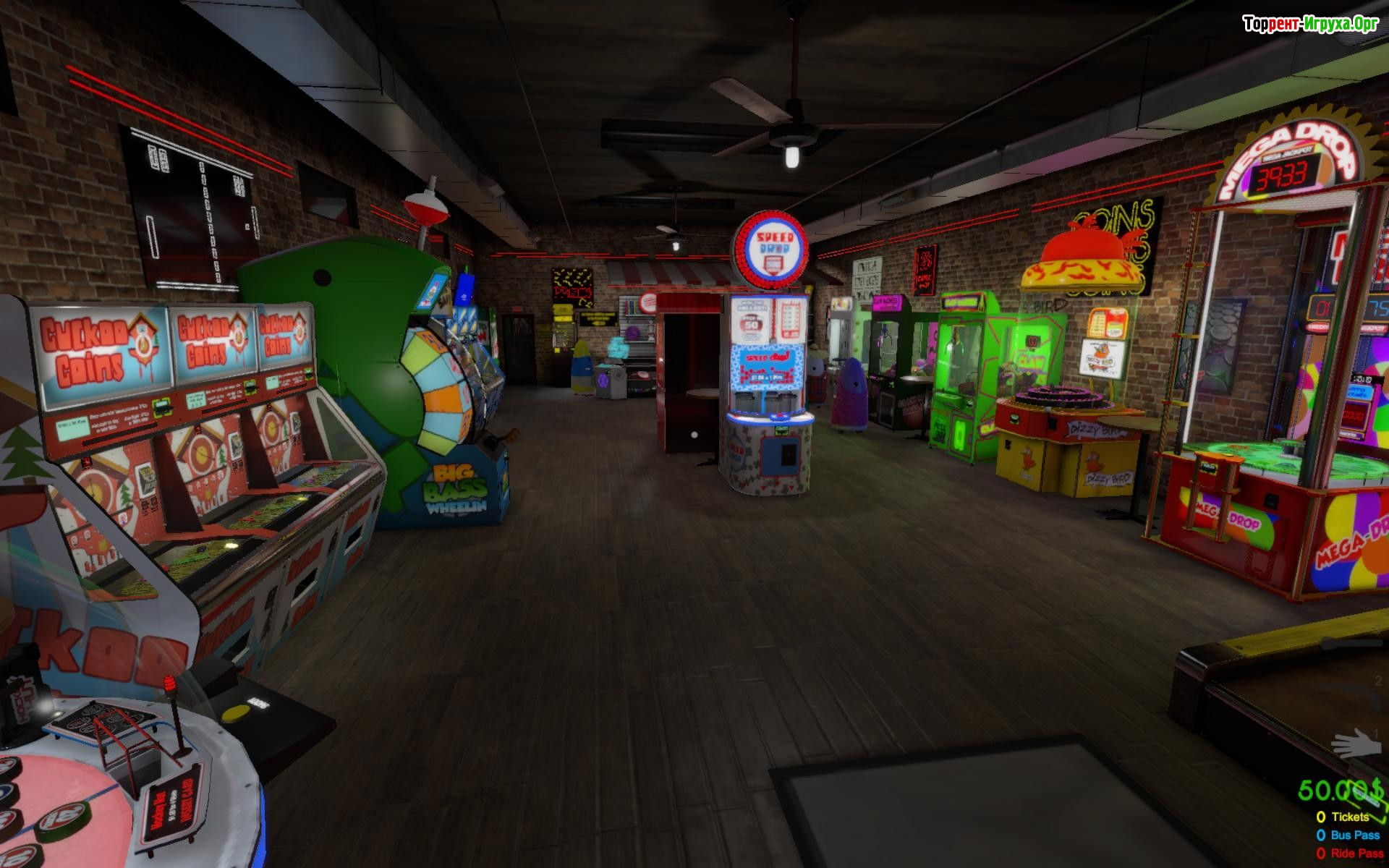 Центральным элементом игрового опыта становятся просторные игровые залы, наполненные автоматами с разными игровыми механиками, вдохновлёнными классическими аркадами. Здесь можно испытать как традиционные развлечения, так и более необычные варианты с яркими аниматрониками. Помимо игровых залов, остров предлагает уютный торговый центр в ностальгическом стиле девяностых с магазинами, кафе и кинотеатром, что расширяет спектр развлечений.