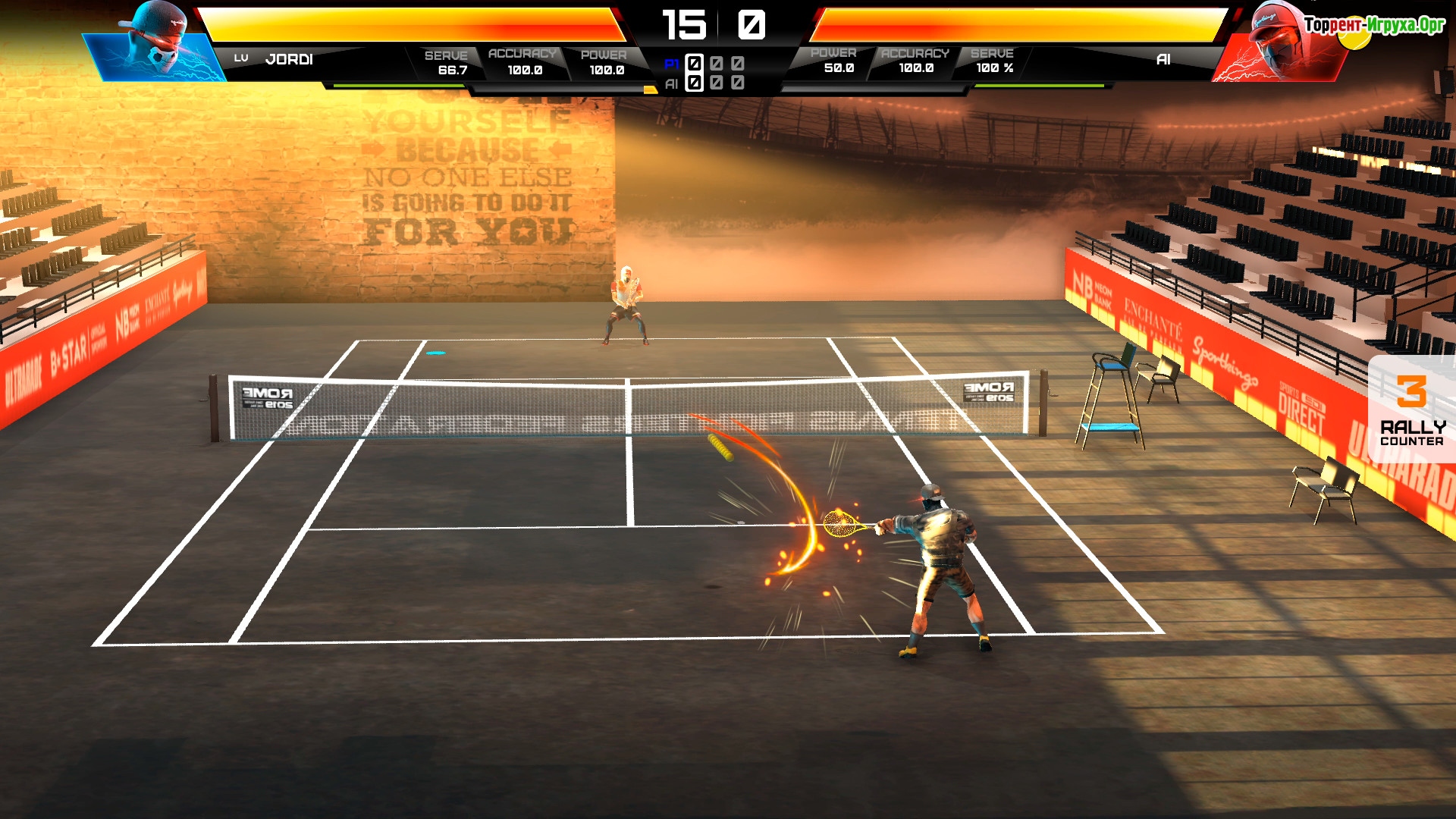 В этой игре спорт и боевые приемы сплетаются в захватывающий сюжет, где каждый удар не только приносит очки, но и наносит урон сопернику. Используйте мощные подачи и ловкие приемы, чтобы быстро истощить здоровье противника и активировать разрушительные суперудары, которые изменят ход поединка.