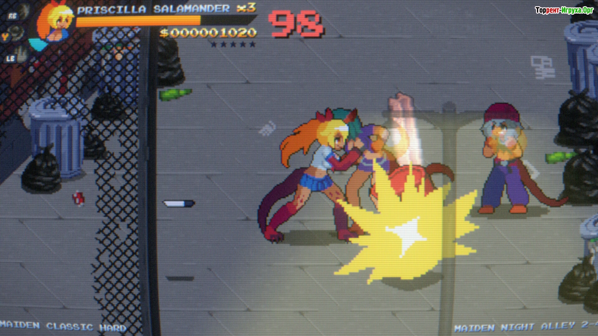 Игра предлагает действительно захватывающие боевые сцены с возможностью играть вдвоём в кооперативном режиме. Помимо интенсивных драк, в Maiden Cops предусмотрена настройка сложности, что позволяет адаптировать игровой процесс под разные уровни навыков. Такой подход делает проект особенно привлекательным для любителей классических экшенов с ретро-стилем.