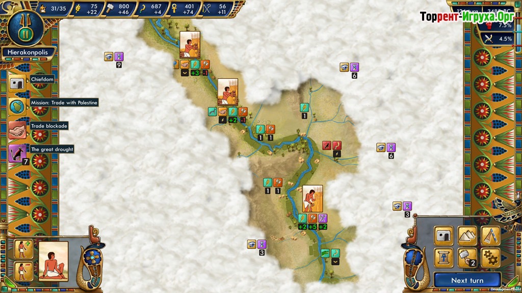 Predynastic Egypt от Clarus Victoria – это уникальная глобальная пошаговая стратегия с элементами исторического симулятора, переносящая игроков в эпоху 5000 года до нашей эры. В роли правителя прото-египетского племени предстоит провести своё народ через века, чтобы объединить Верхний и Нижний Египет в единое древнее государство.