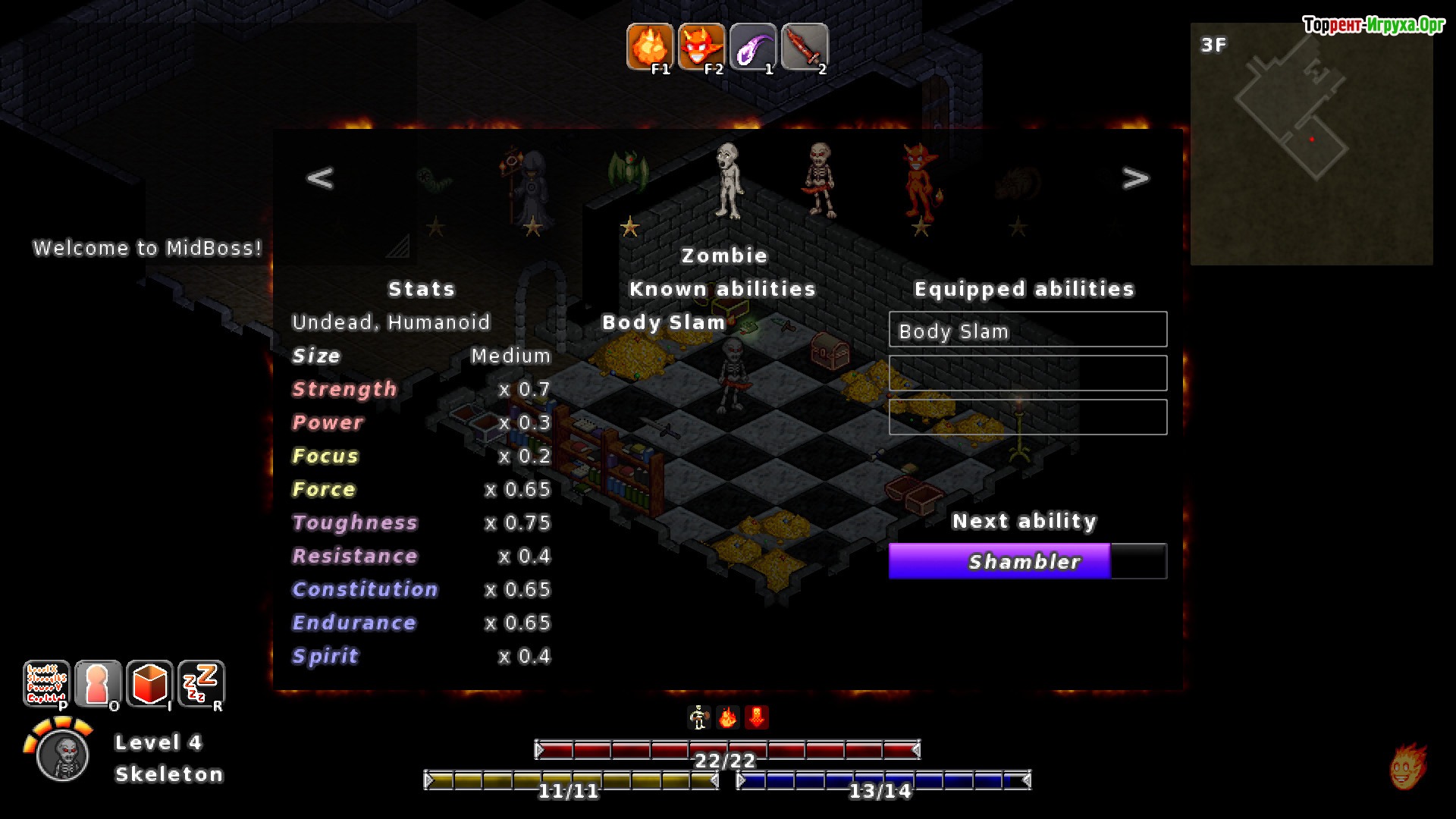 Путешествие героя пройдет через мрачные и запутанные подземелья, наполненные опасностями и врагами. Вам предстоит сражаться, побеждать и перенимать способности у противников, чтобы укрепить свои силы. Кроме того, в игре есть возможность находить новое оружие и улучшать навыки персонажа. Отправиться в это захватывающее приключение можно, скачав торрент MidBoss на ПК.