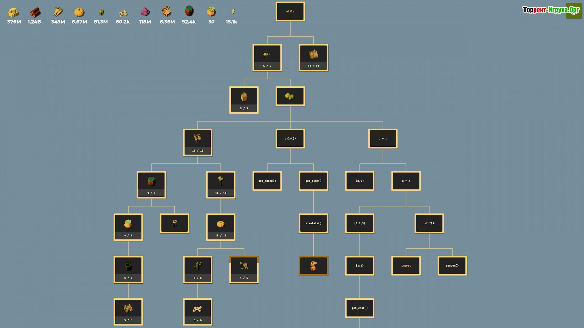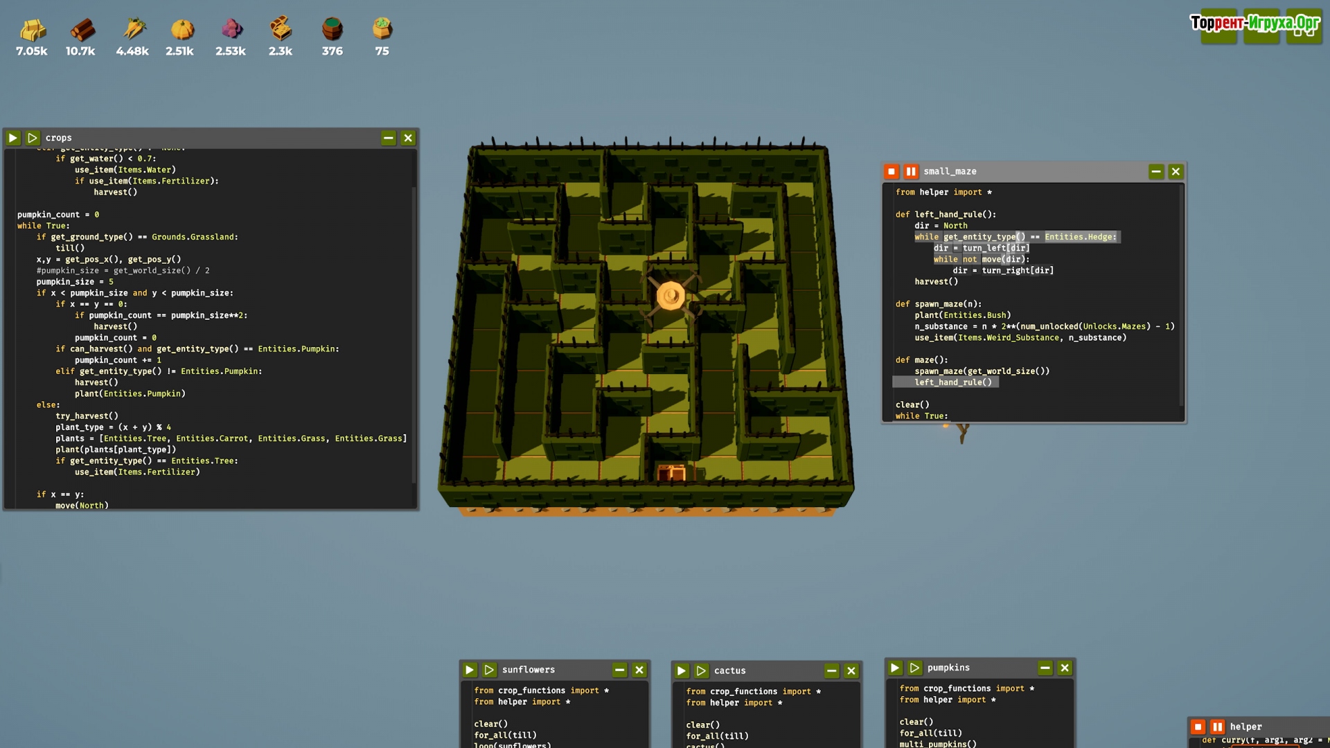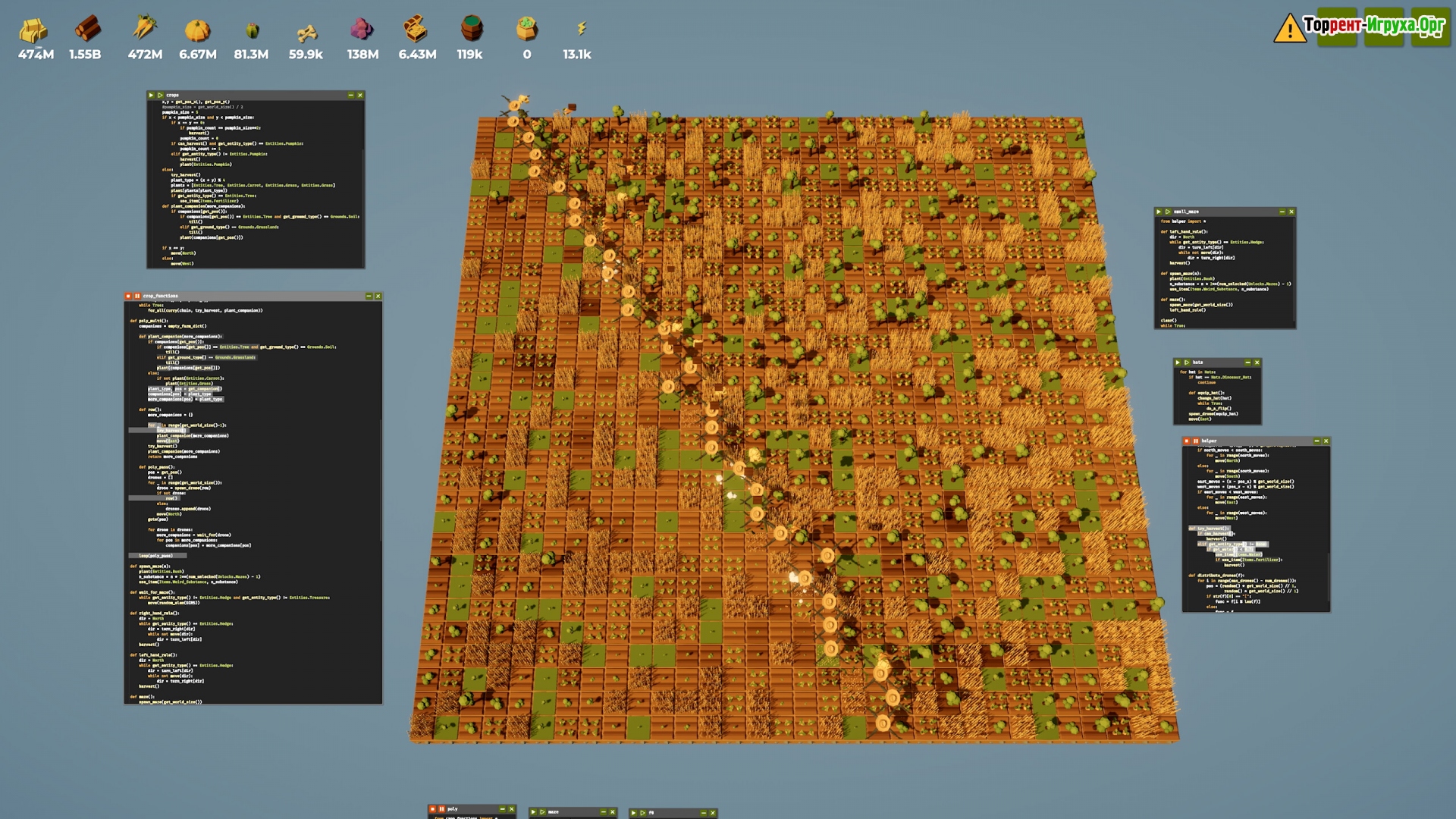 Глубокое изучение принципов программирования в The Farmer Was Replaced позволяет наложить аналогии с языком Python, что даёт простор для творчества и реализации разнообразных условий. Установка логических вариантов и достижение целей требуют постоянного самосовершенствования. После скачивания игры через торрент на русском языке вы сможете погрузиться в захватывающее приключение, где важна не только логика, но и исследовательский подход к решению задач.