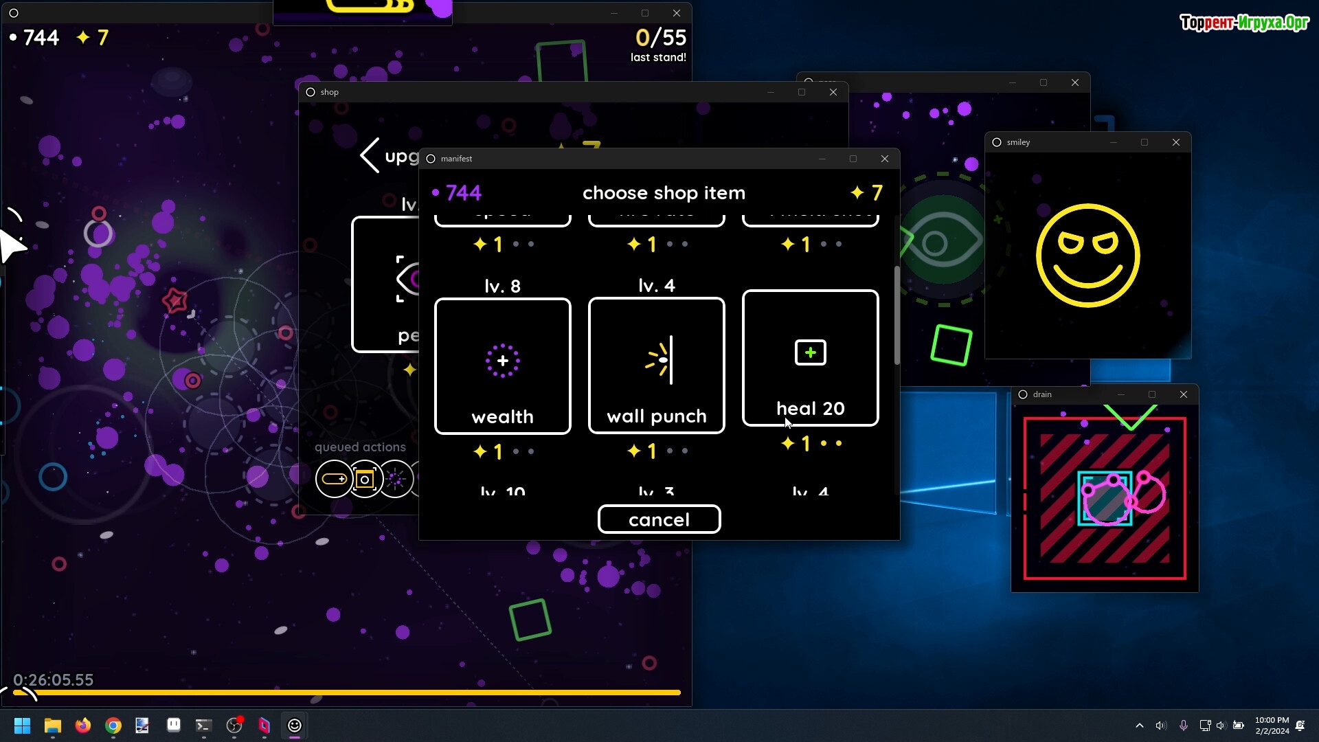 Игра отличается необычным геймплеем, где само окно становится ареной сдвигающихся и перемещающихся окон магазинов. Благодаря этому процесс партит быстро, создавая ощущение напряжения и динамики на экране. В вашем распоряжении всего одна жизнь, и противостоять вам будут волновые атаки врагов и сильные боссы. Используйте найденные и приобретённые в магазинах улучшения и навыки с умом, чтобы выжить и пройти дальше.