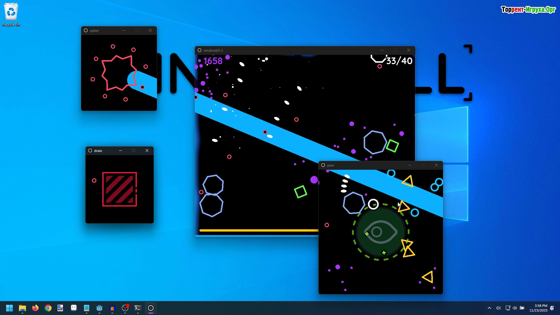 Windowkill — это уникальный твинк-стик шутер от разработчика torcado, вышедший в 2024 году, который предлагает захватывающее игровое пространство с постоянно сжимающимися границами окна. Такой подход заставляет игрока оставаться внимательным и мгновенно реагировать на изменения игрового экрана.