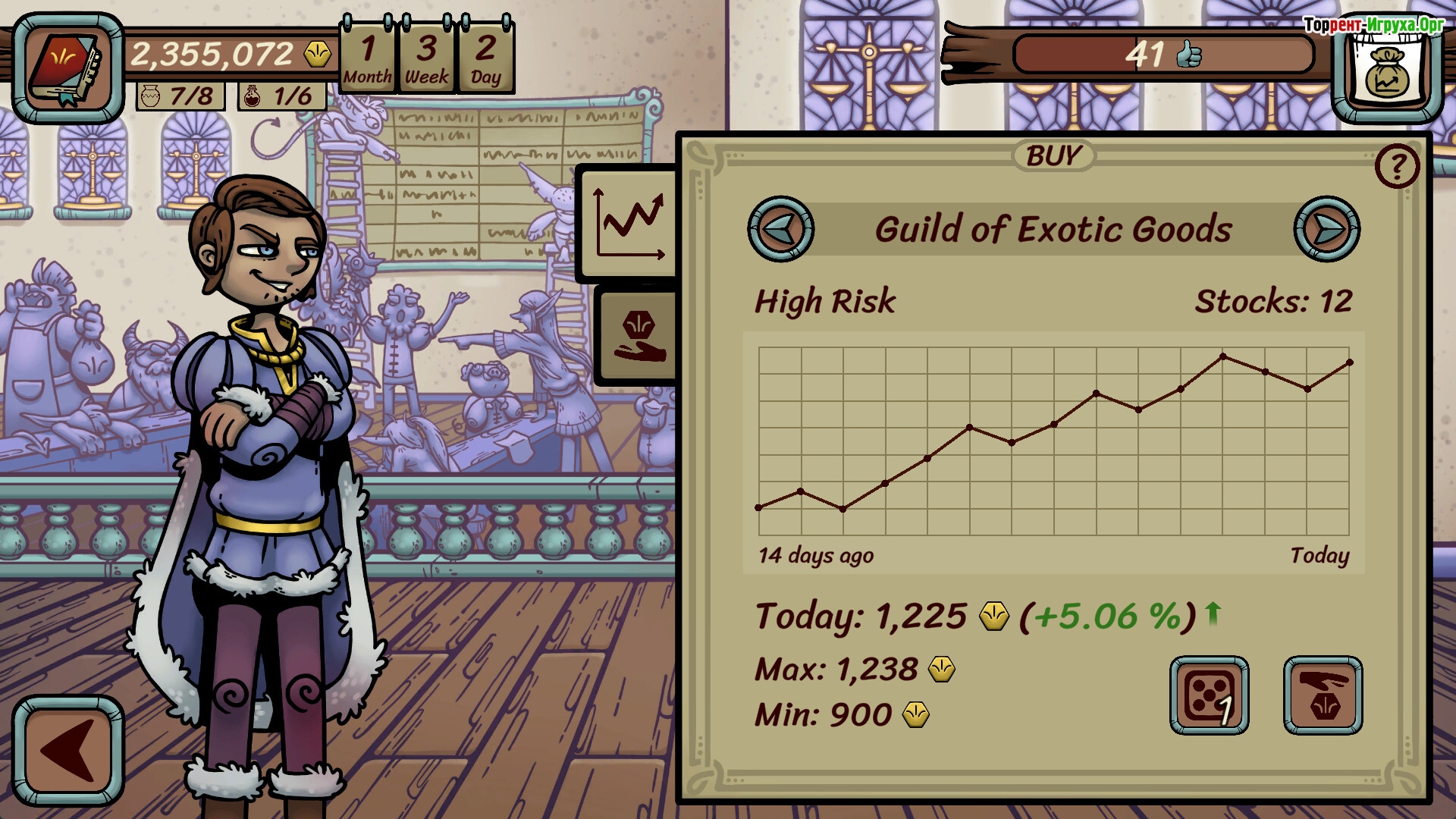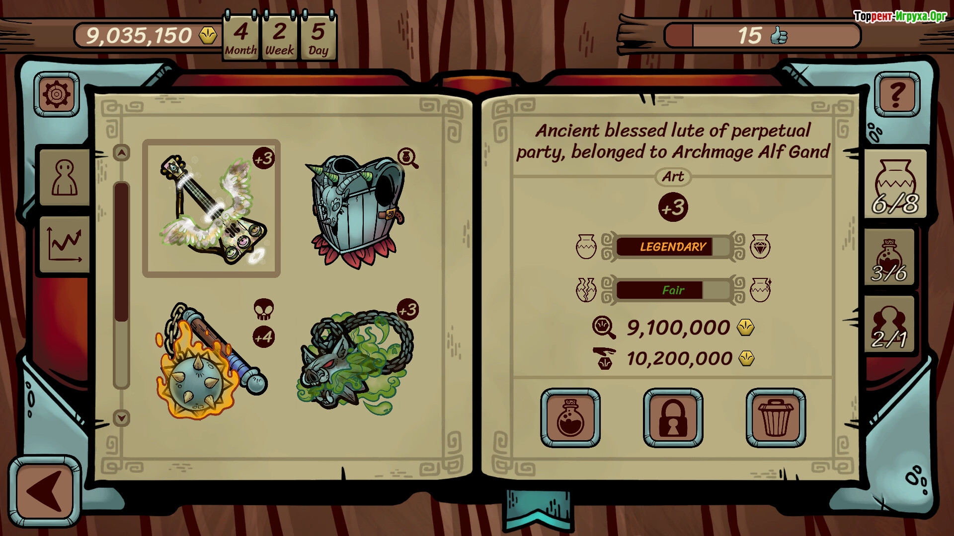 Также, тут есть прокачка, всякие зелья, компаньоны, проклятые предметы, квесты и тд. Разработчик попытался разбавить игру контентом, но, основной геймплей, именно - торговать и максимизировать прибыль!