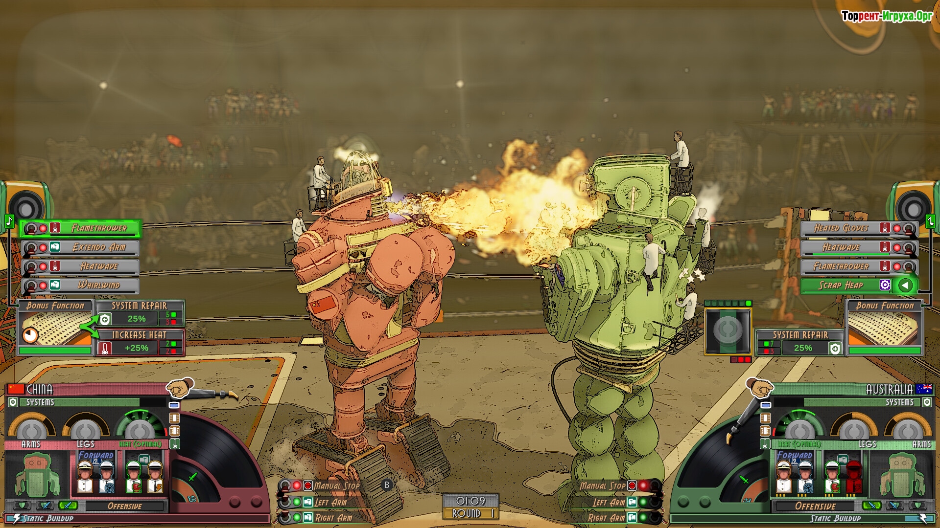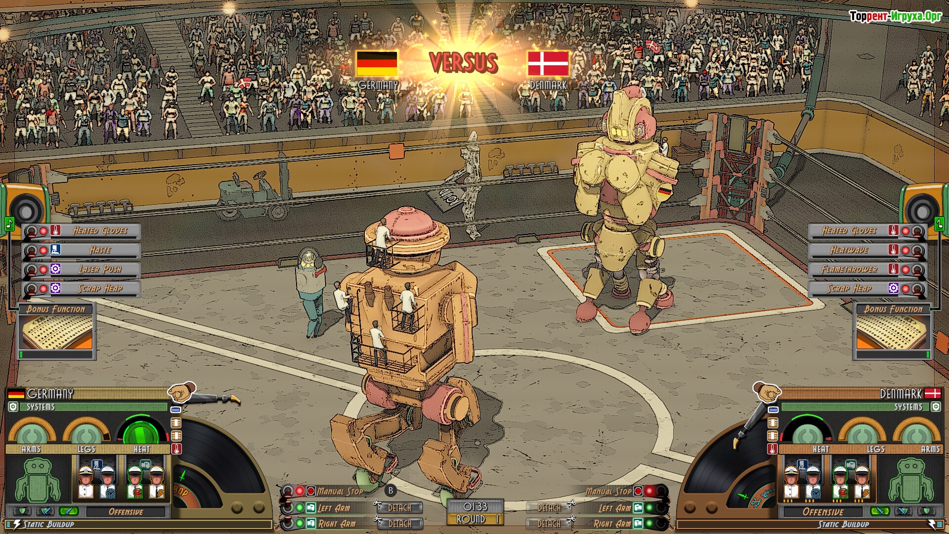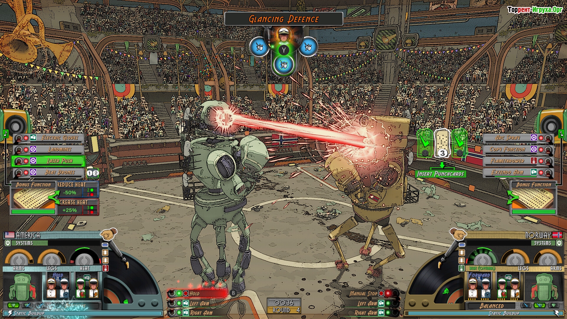 Каждый бой представляет собой не просто сражение, а тщательно продуманную стратегию, в которой выбор перфокарт с активными и пассивными навыками, распределение ролей экипажа и время активации способностей через музыкальные мини-игры играют ключевую роль. Контроль за состоянием деталей крайне важен, ведь от их исправности зависит успех в бою и эффективность вашего механического бойца.
