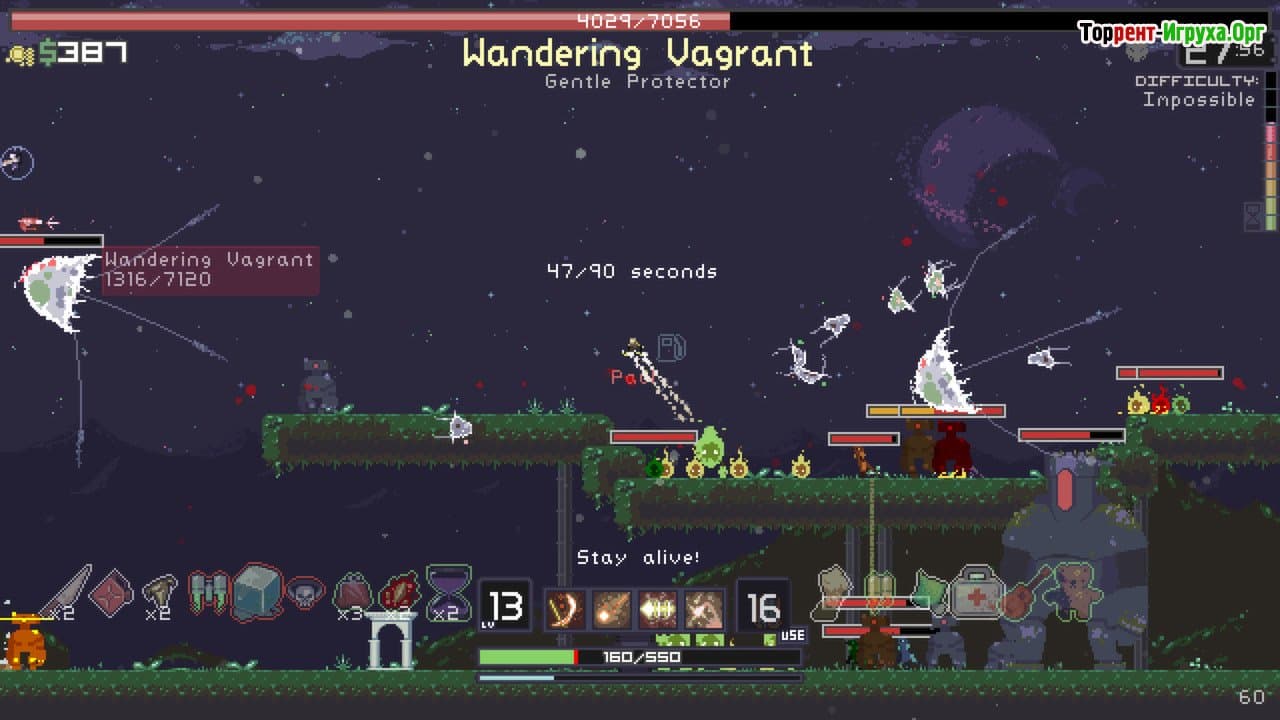Не стоит обращать внимание на пиксельный стиль — на самом деле основная сила игры заключается в захватывающем геймплее. Вы управляете смелым персонажем, владеющим мощным арсеналом, способным уничтожать множество врагов одновременно и выдерживать схватки с гигантскими боссами. В процессе важно внимательно следить за улучшениями и собирать уникальные артефакты, которые помогут выстоять в неизведанных и опасных условиях.