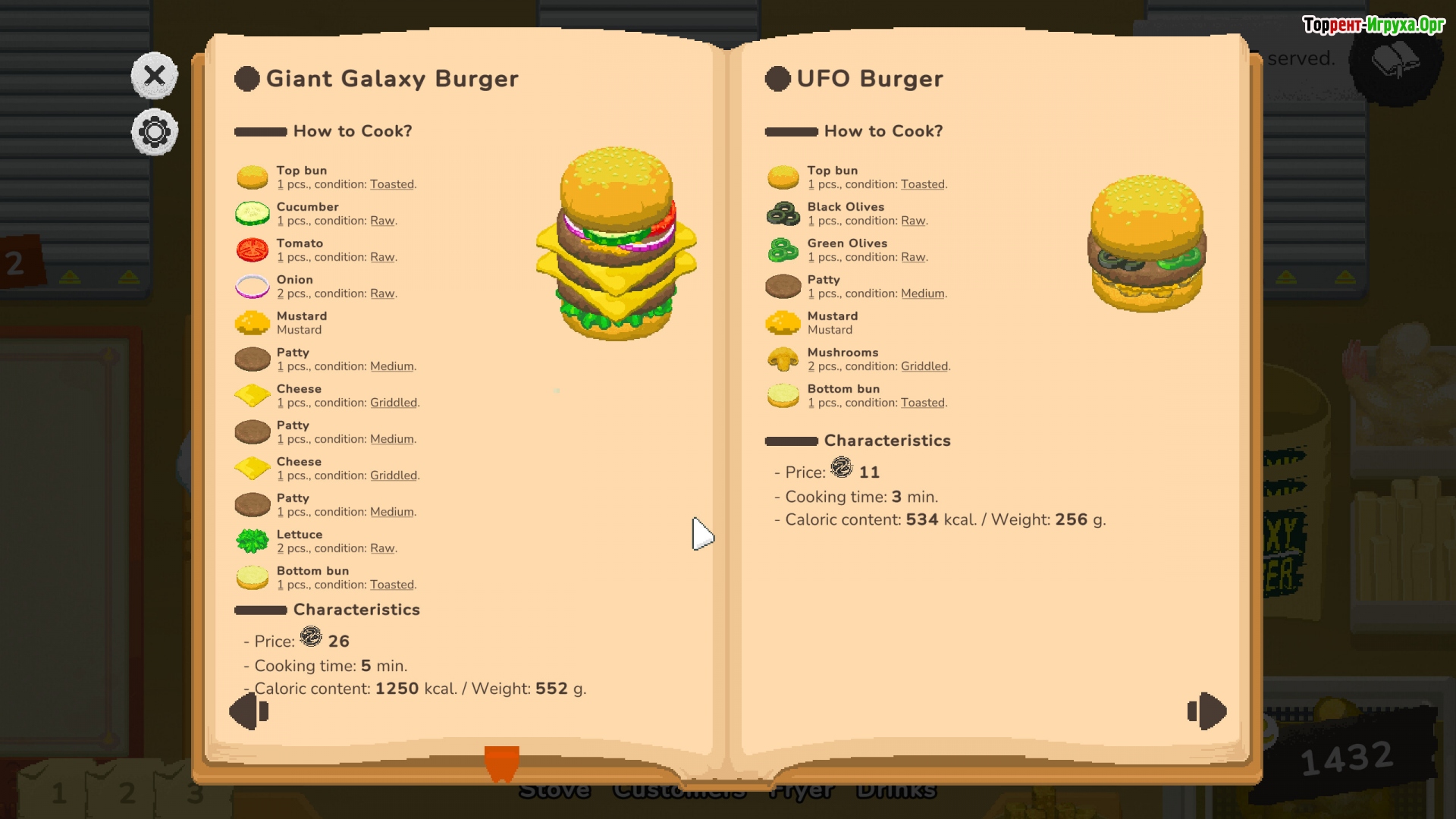 Помимо бургеров, в Galaxy Burger доступен широкий ассортимент блюд и напитков, включая картофель фри, кальмары и свежие соки. Эта игра создает живую и веселую атмосферу, где коллективная работа и стратегическое мышление становятся залогом успеха в удовлетворении разнообразных вкусов зрителей.