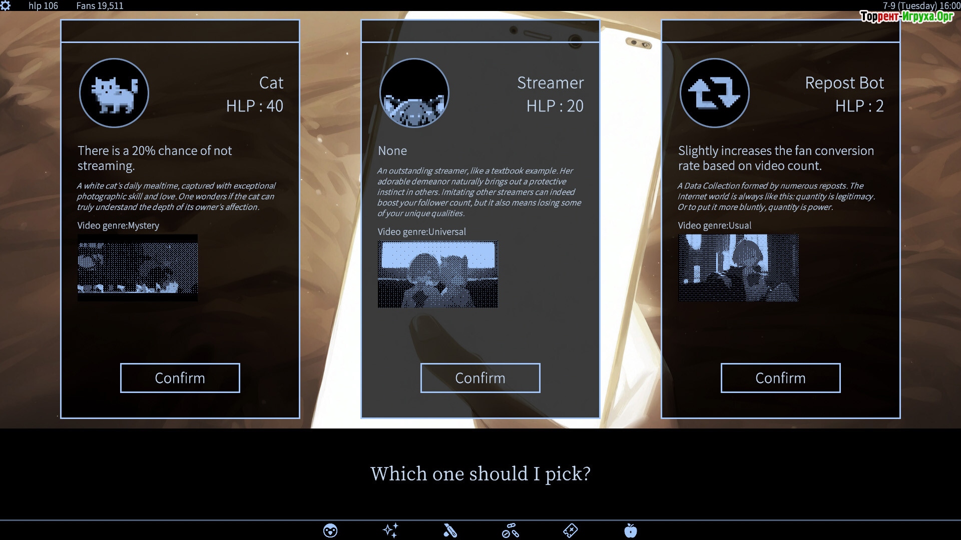 Вы берёте под управление искусственный интеллект, воплощённый в героине, возрождённой после трагедии. Ваша задача — развивать её и поддерживать успешное присутствие в сети, собирая разнообразные данные для улучшения видеоконтента. Каждая информация оказывает уникальное влияние, а правильные комбинации способны открыть новые возможности для стримера. Собранное вдохновение становится ключевым ресурсом для создания привлекательного контента и повышения популярности.