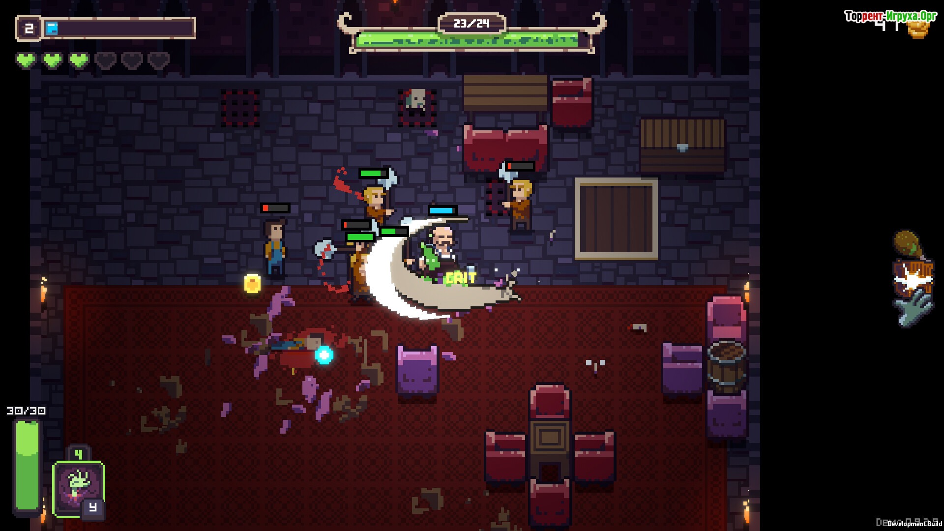 В NecroBouncer динамичный игровой процесс: вооружившись мощным посохом, вы исследуете локации клуба, выслеживая шумных пьяных монстров, которые мешают порядку. Приготовьтесь к непростым встречам с боссами и тактическому применению сокровищ из драгоценных камней, которые помогут улучшить навыки вашего героя. Комбинируя эти силы, игрок открывает новые возможности и стиль игры.