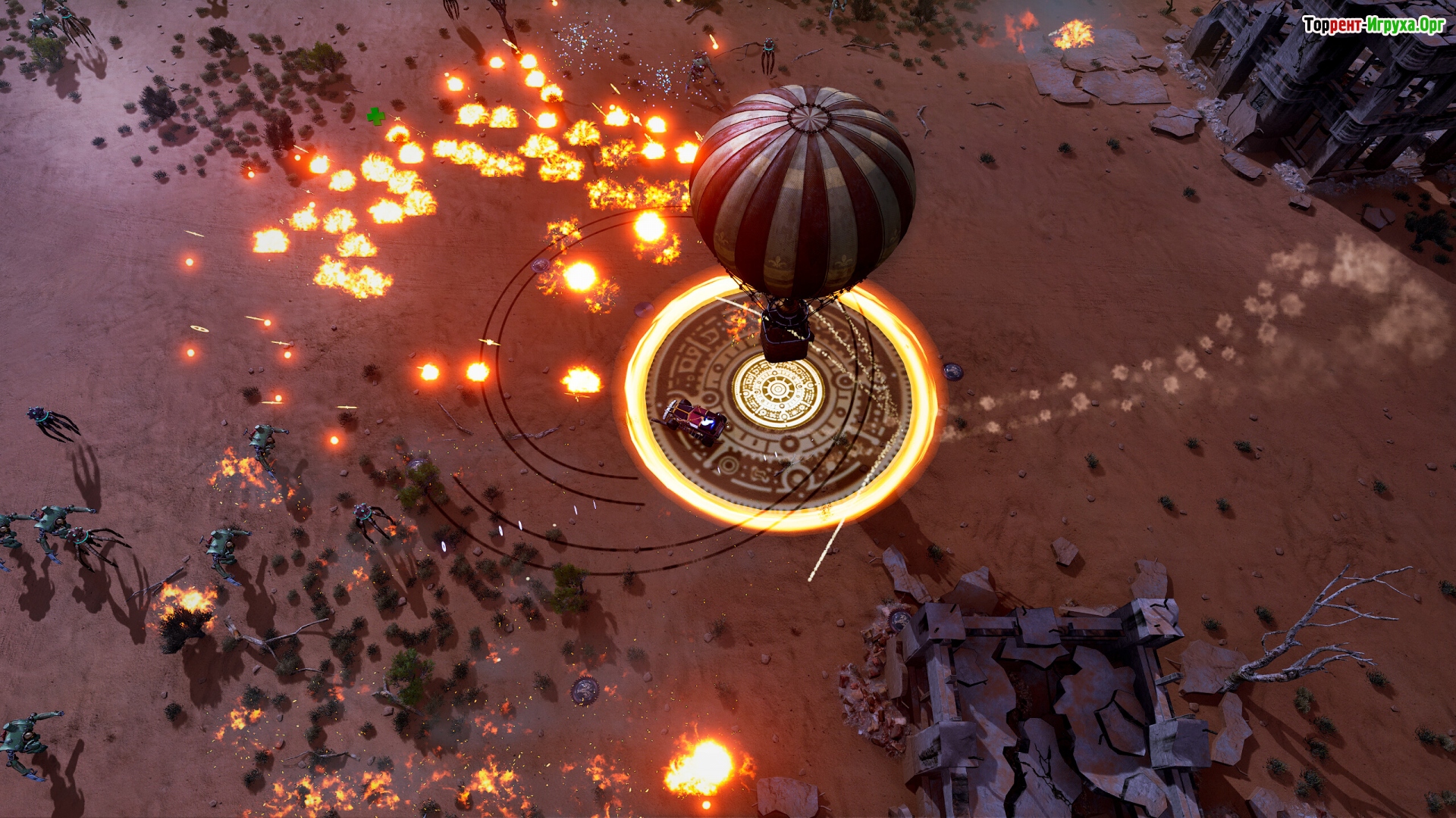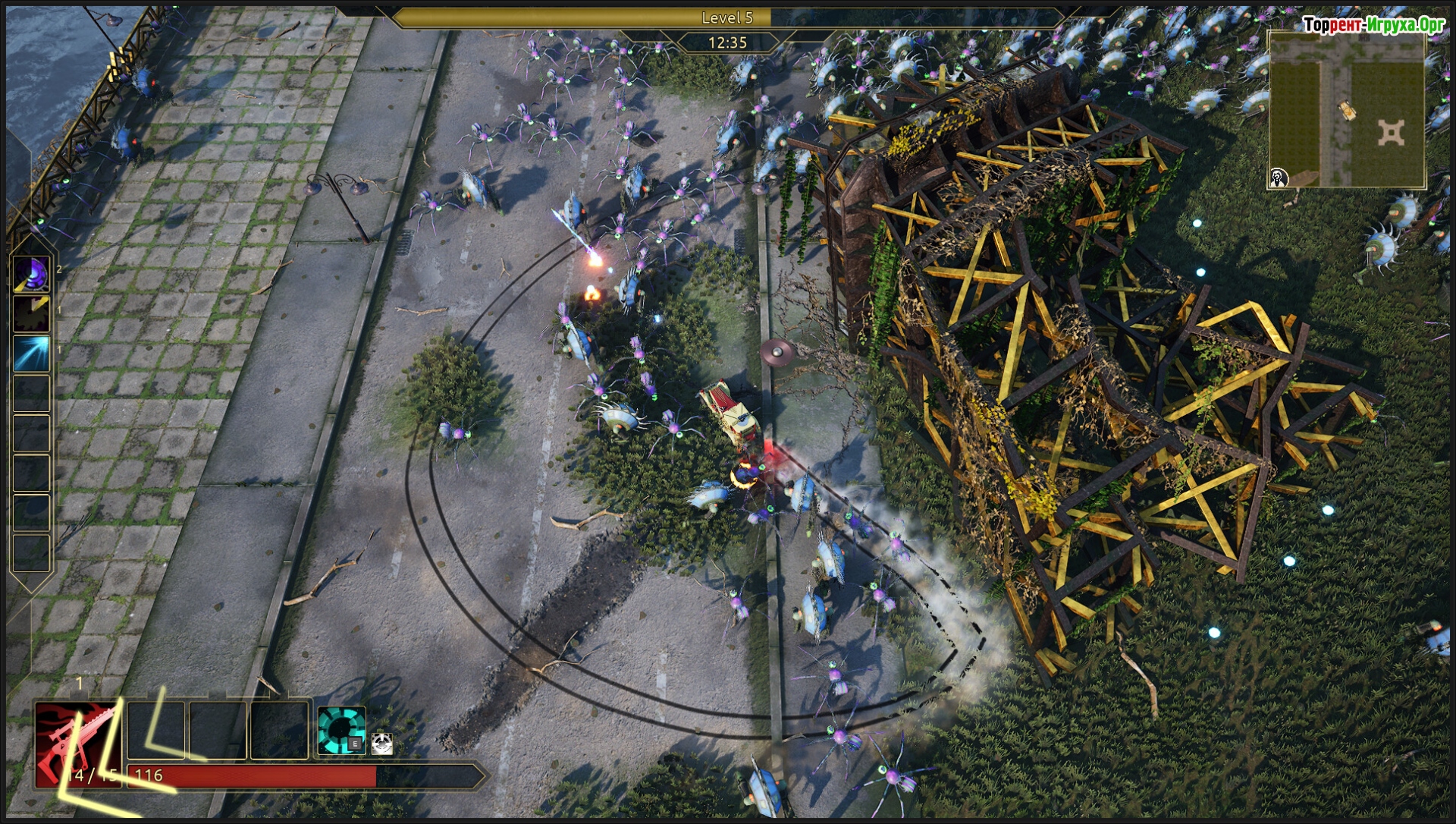 Это обычный "Вампаер-сюрвайверс", в котором на тебя бегут сотни врагов, а ты должен от них отстреливаться. Что выделяет именно эту игру на фоне других? Бортовое или заднее соприкосновение с твоей моделькой = получение урона. Но "Таранить" противников можно и даже нужно. Дрифт с зажатым пробелом, это демедж-абилка.