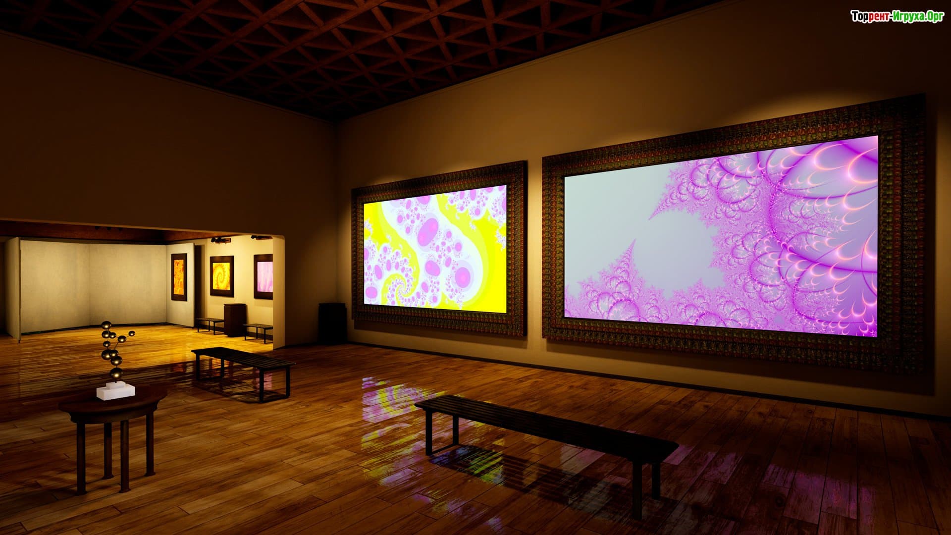 Главной особенностью Fractal Gallery VR является её изысканный визуальный стиль. Вы прогуляетесь по разнообразным залам, наполненным оригинальными картинами, каждая из которых представляет собой настоящие произведения искусства. Детальная проработка окружающей среды позволяет насладиться каждой деталью и получить максимум эстетического удовольствия от виртуальной прогулки по галерее.