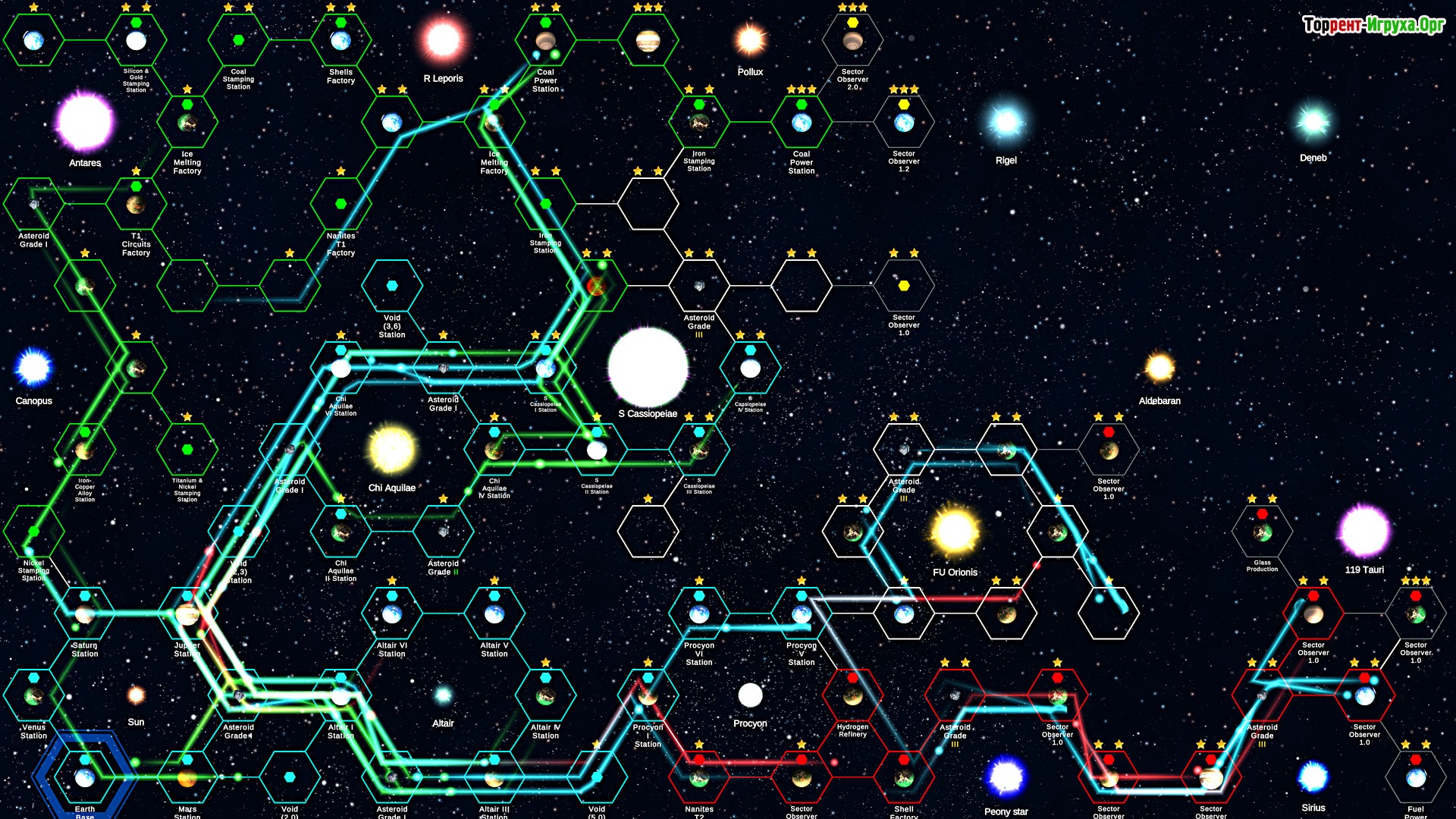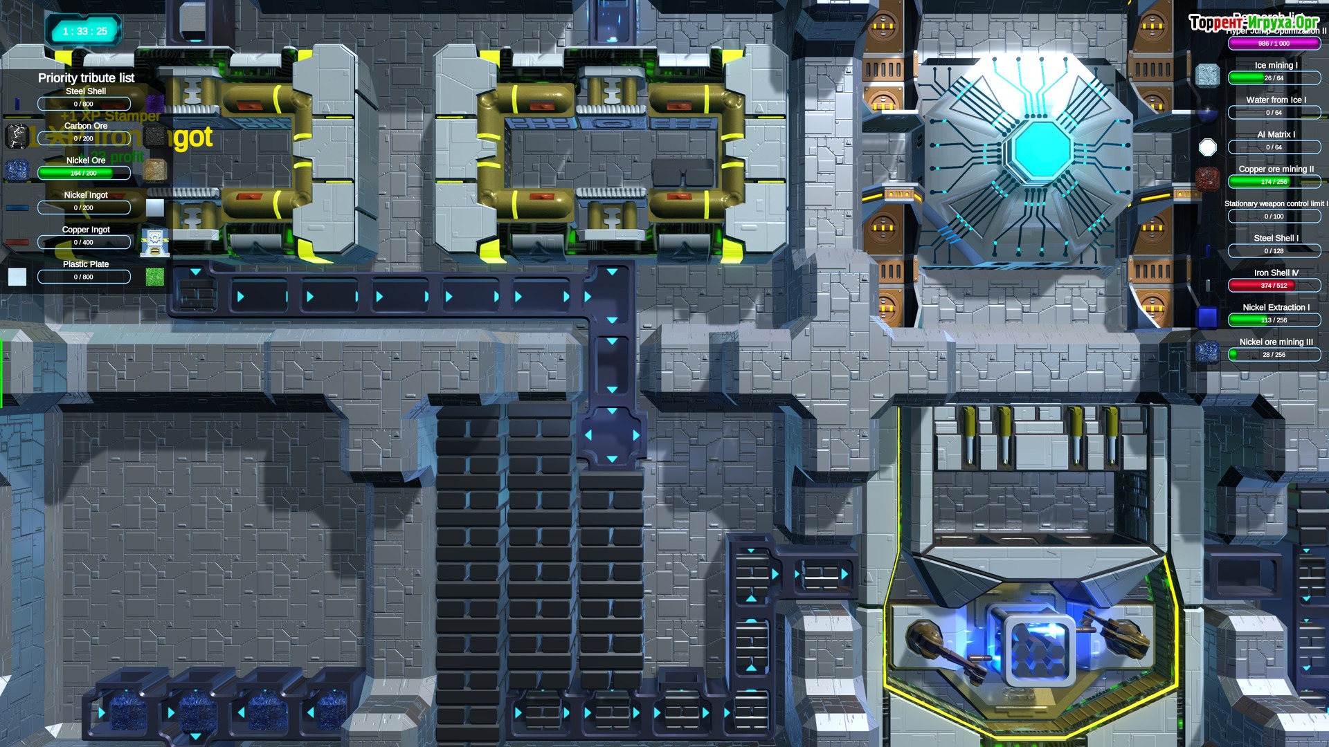Игра демонстрирует полную визуализацию ресурсов, которые находятся прямо на игровом поле, без скрытых инвентарей. Для эффективного управления используйте автоматизацию: создавайте маршруты для добычи полезных ископаемых и стройте сложные производственные цепочки с использованием индустриальных машин, соединённых жидкостными и пневматическими трубами. Транспортные линии между станциями помогут оптимизировать логистику.